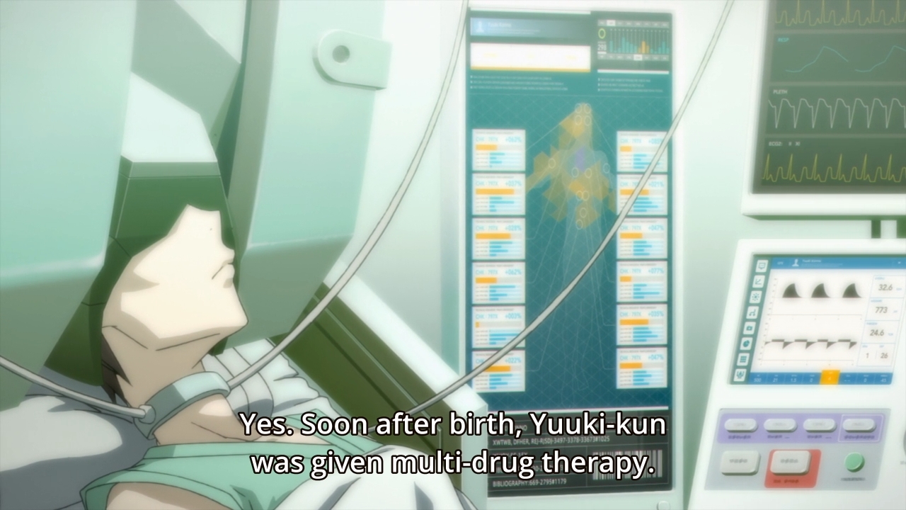 Am I to assume that there are no laws and/or medical professional rules of conduct? Or are we getting another unlucky dice roll with medical personnel who are just shit? Maybe it’s just Kawahara creating another exposition-role. But I’m sure that Gary Stu would’ve just filled the role anyway; he is using his mad computer-wizard skills, so I’m pretty positive he could’ve just find out everything wrong with Yuuki. It wouldn’t be the most ridiculous thing that’s happened in this show.
