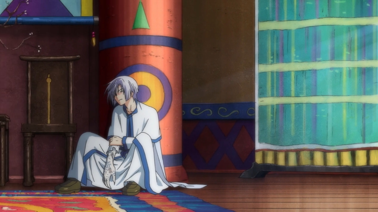 — It seems so pointless to hide in some village, though. I know they’re supposed to wait for the red-haired individual to find them and recruit them. I know how that legend goes. But man, it would be nice for the story to subvert the legend some more. The only subversion here is that Yona is a girl. In any case, the old caretaker said something along the lines of “Maybe this era doesn’t need your powers.” That is clearly not the case, but there’s no way any of these people would know! Because by some strange design, their job is to seclude themselves in the mountain until the chosen one fortuitously stumbles upon them. Until then, however, the White Dragon’s power goes to waste. The lady even goes, “You need only stay in the village and not worry about anything.” That’s fucked up. He’s essentially just a prized songbird unless Yona shows up to free him.