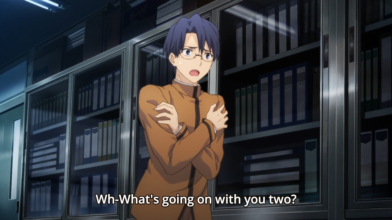 — Shirou and Rin learn that Kuzuki has been staying at Issei’s temple for quite some time now. Well, isn’t that convenient? Shirou’s friend then goes on the describe the teacher as “the quiet type… a forthright and truly conscientious man.” See, if Issei had sandbagged Kuzuki, I would totally believed in the man’s innocence. But because irony is the height of storytelling, you just know that he is Caster’s master.