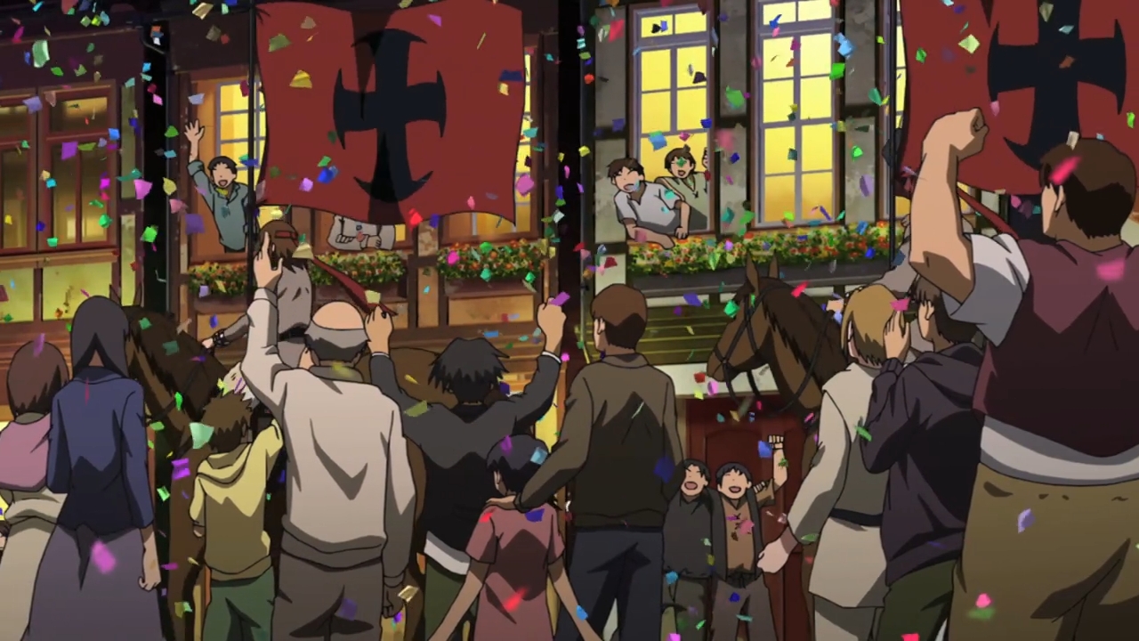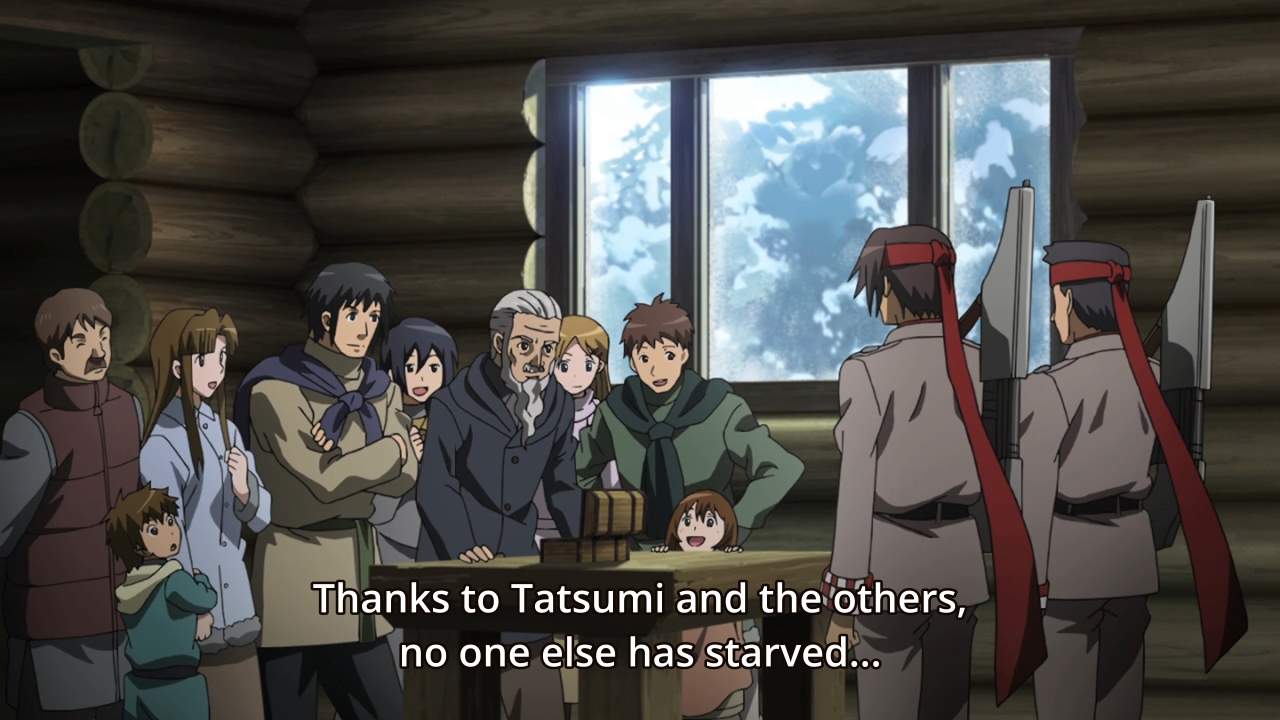— We can’t stop! We won’t stop! More wrap-up scenes with people I don’t care about! Oh goodie, Tatsumi managed to send money back to his village right before he died! Ah, these poor villagers don’t even realize that Tatsumi and his friends are long dead. Hell, two of them died before the story could even properly begin…
