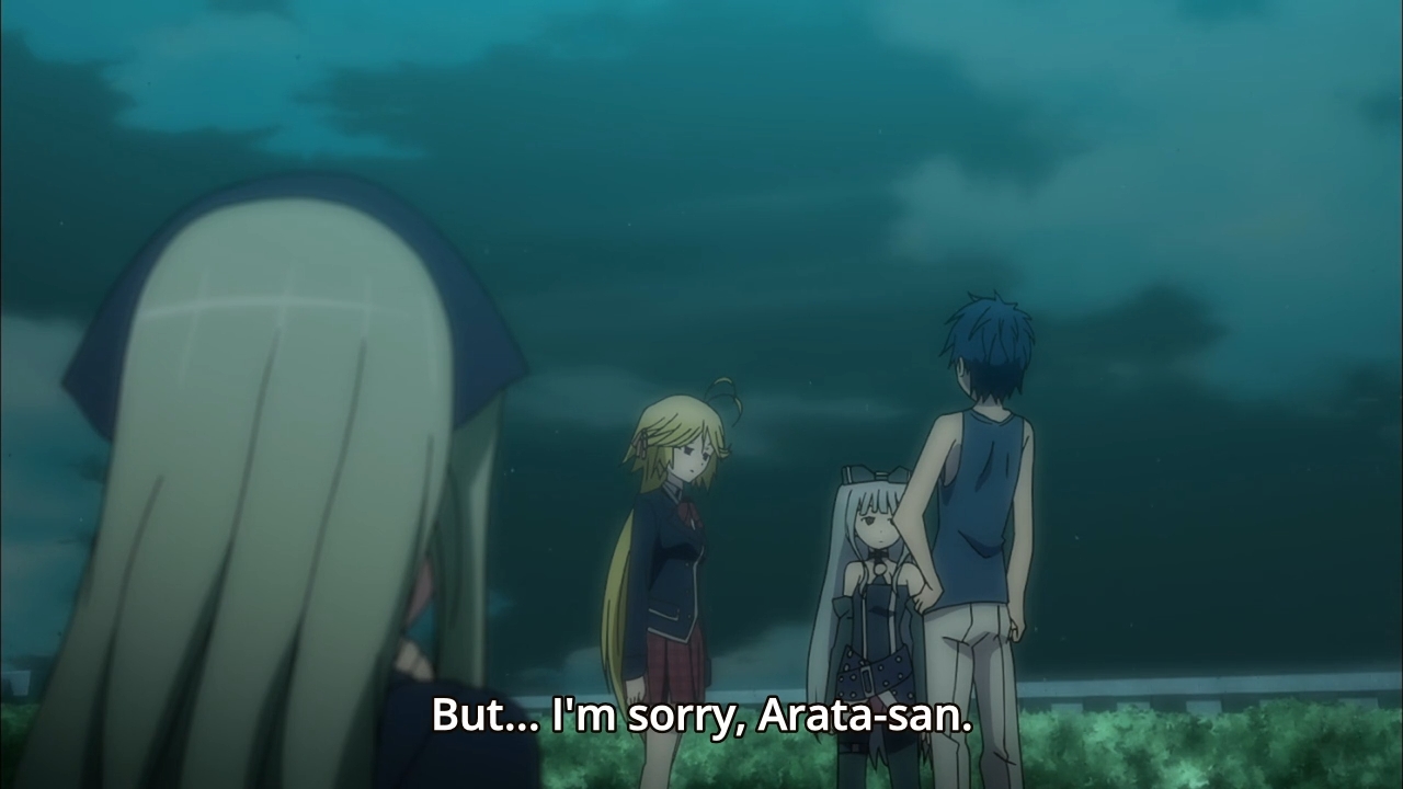— There’s not much else to say about the episode. Naturally, Hijiri is a demon lord as well. After his haremettes travel across great distances in an instant just to save him, Arata learns that his own school is about to be destroyed. Oh well.