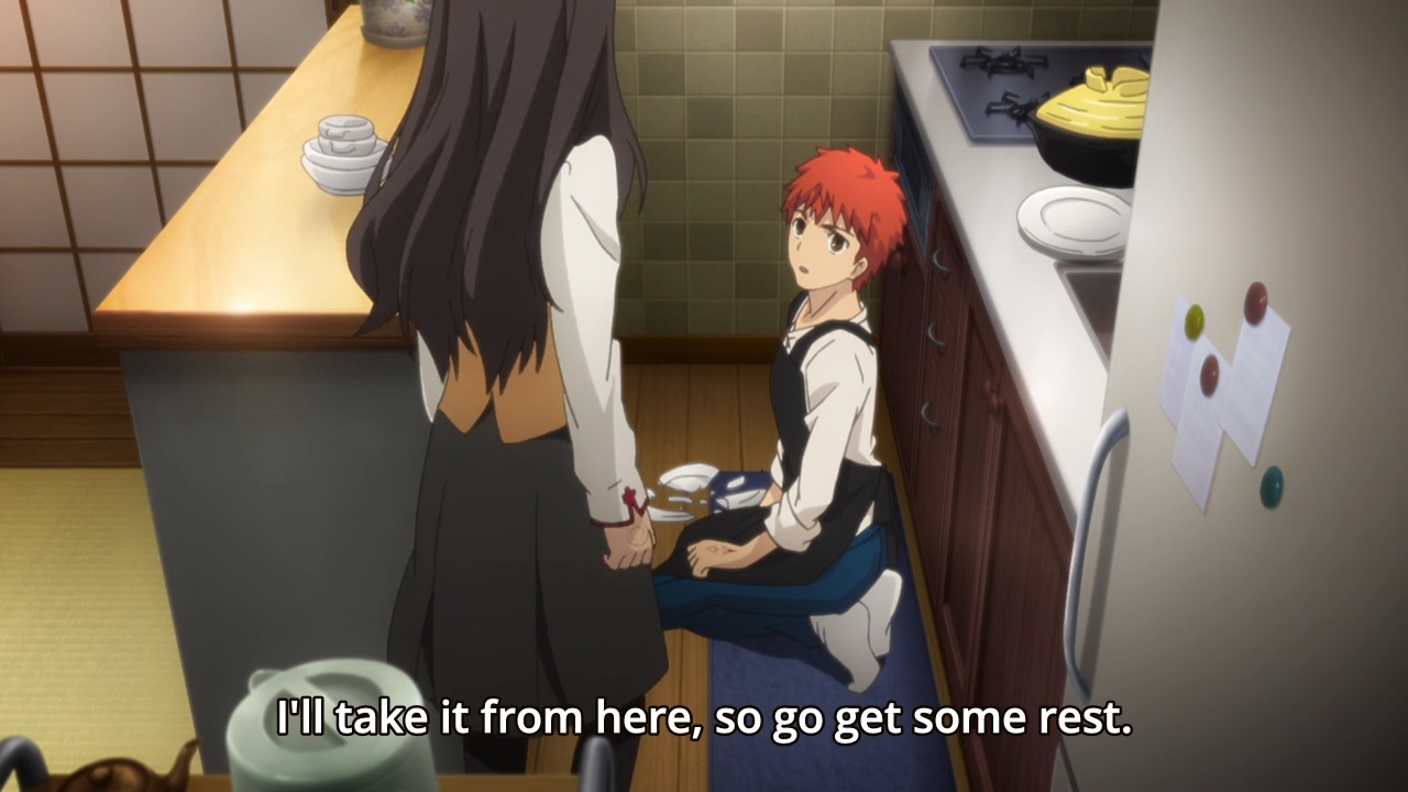 — Shirou would rather break a bunch of dishes then just admit that he’s feeling a bit weak in one of his arms. I mean, with magic flying around in this universe, what if he’s not just fatigued? What if his strength is actually being sapped by a terrrrrrrrible curse?! So honestly, dude’s just being stubbornly irresponsible.