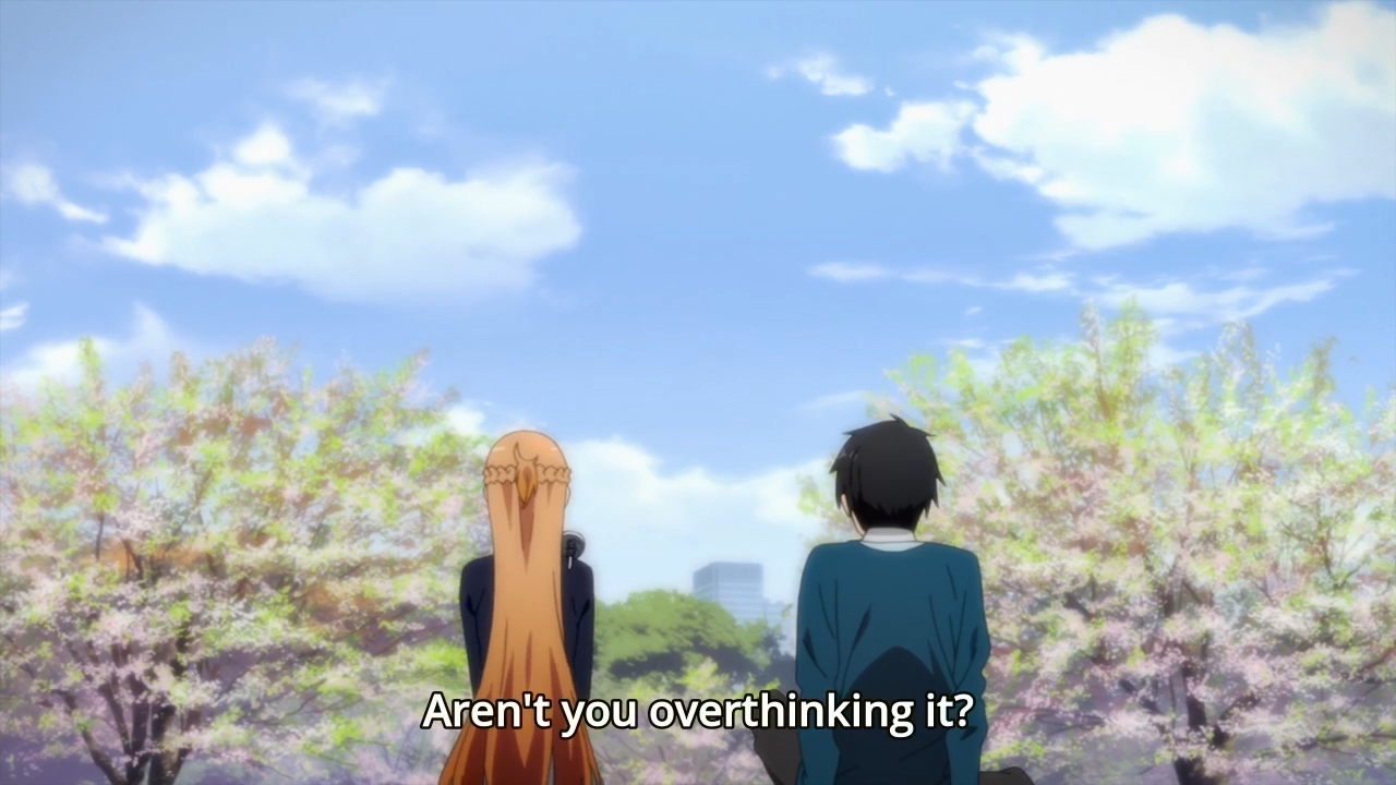 Nevertheless, the girl gets to go on a vacation with her friends–… Whoa whoa whoa! A vacation in… the real world? You mean there are things in the real world that are worth seeing? You mean a dying patient should probably want to experience other things besides a shining high school life? Word?