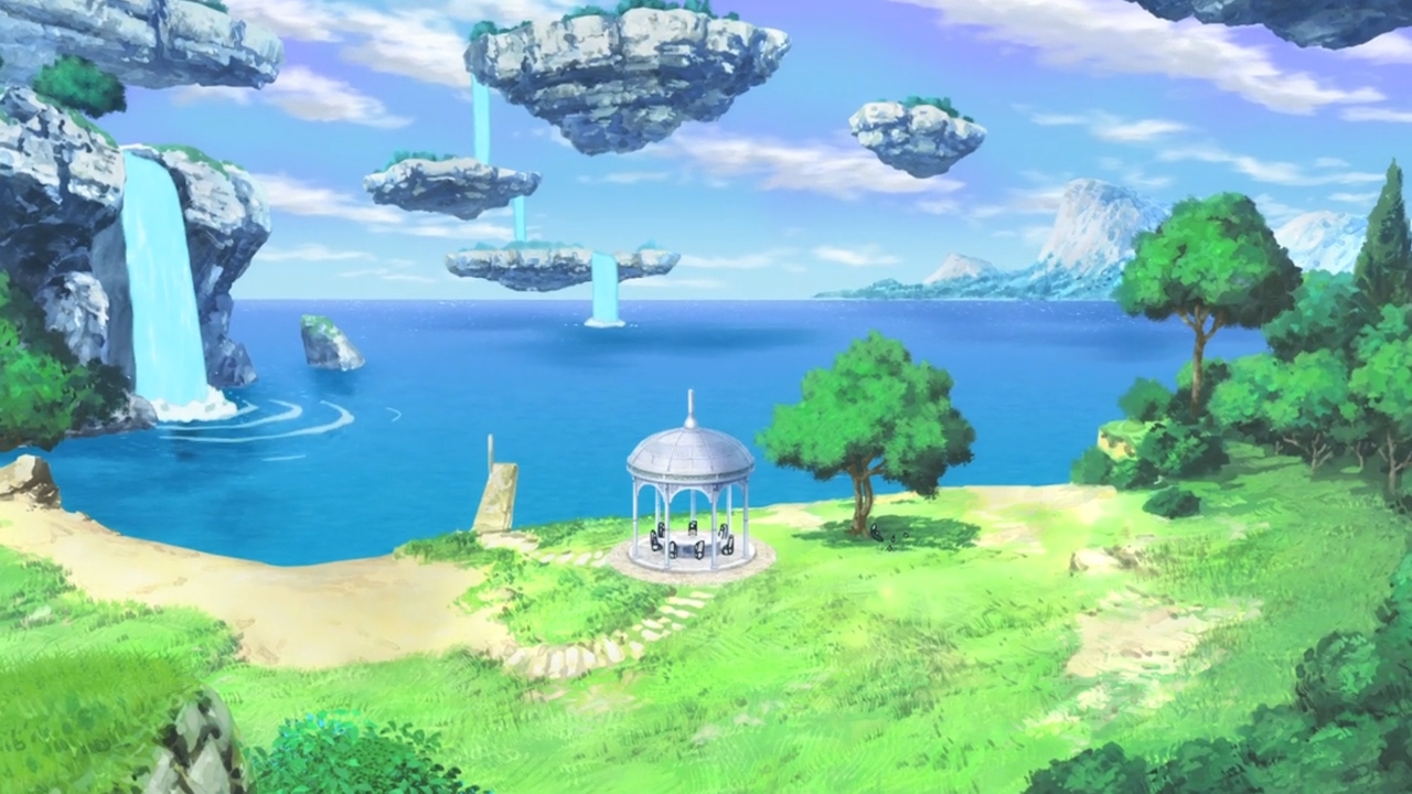 — Oh hey, very important people have gathered in one place to talk about the story! This is pretty much an anime staple, y’know. But let’s give credit where credit’s due: at least they’re not in some dimly-lit room. We later find out they’re really not in some pristine-looking garden. It’s all a simulation. Hell, maybe this universe itself is just a simulation…