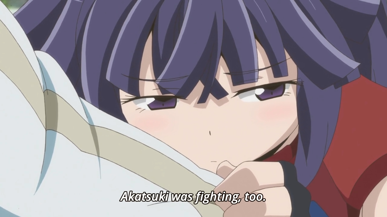 That was, uh… anticlimactic. Look, it’s not like I was expecting Shiroe to fight both Kinjou and Uru all by his lonesome. After all, he’s just an enchanter, and he’s not exactly the hero of the story because he’s a great warrior. But if we weren’t going to have a test of strength, then at least give me a test of wits or something. Give me some sort of conflict, y’know? But other than Kinjou looking somewhat frightened to see Shiroe, the two men basically just stood there and talked to each other. For such a pivotal moment in the arc, there was no tension here whatsoever. Naturally, my reaction as a viewer is like, “Oh, that’s neat, I guess…” I suppose there’s nothing particularly egregious about what we have here, but are we seriously content with that? Is “neat” honestly enough to placate us? It sure as hell doesn’t placate me.
