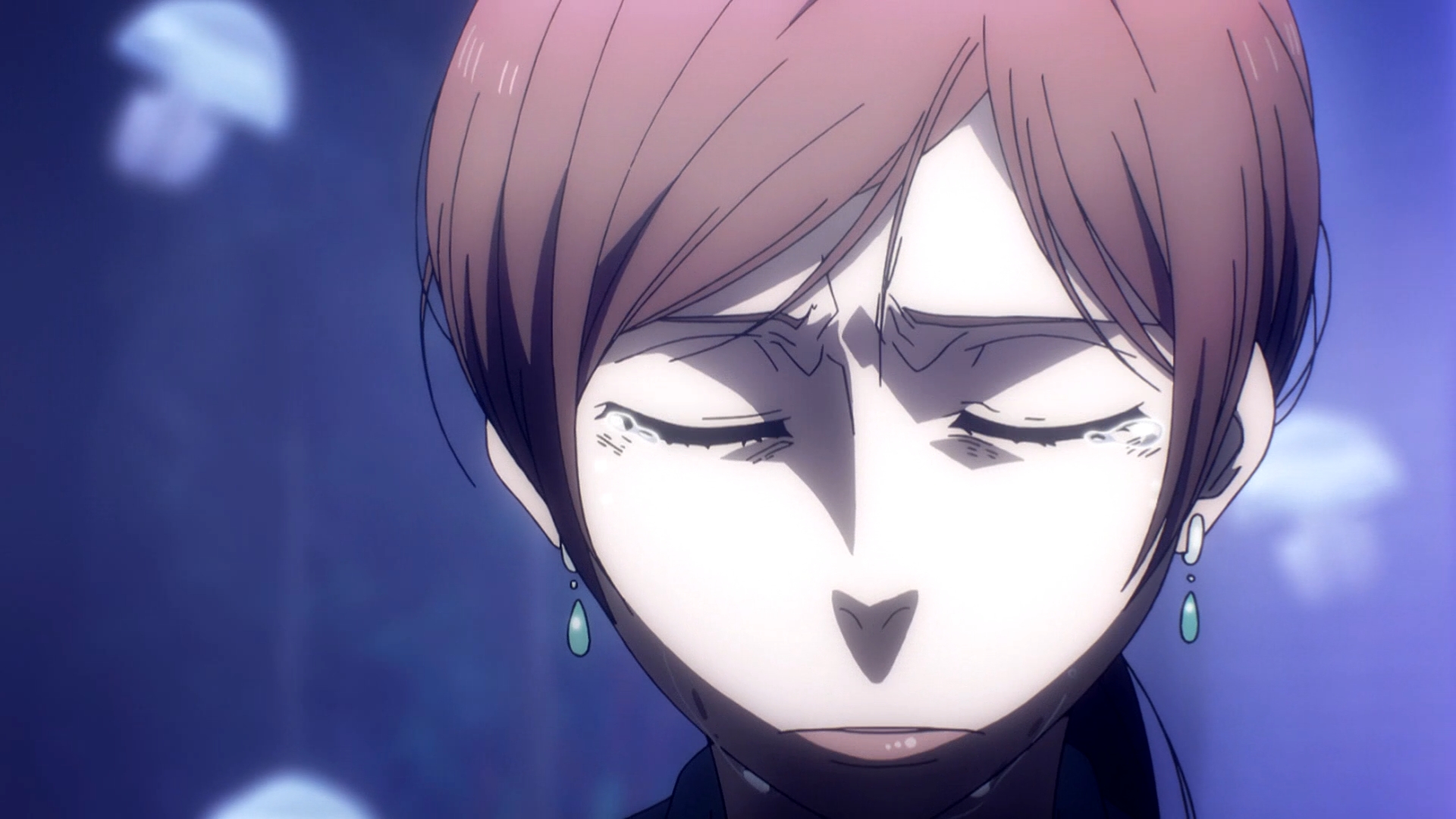 The problem here is that everything seems ambiguous. Should we take the flashbacks at face value or not? Are they supposed to be reliable? Or are they, like anything that has to do with our memories, always imperfect and open to interpretation? I mean, this is the key question, isn’t it? We see a flashback in which Machiko is naked and crying in bed next to an apathetic individual on his phone. We can also see a wedding ring on Machiko’s ring finger, so this moment occurs after she had married her husband. At face value, we can assume that she really did have an affair, but she quickly regretted what she had done. But how reliable are the flashbacks? Can we even know for sure that this was a flashback, and not just one of the characters’ imaginations? These nagging doubts turns Death Parade into an anime Rorschach test, if you will. I suspect people will interpret these stories quite differently, and their interpretations will reveal a lot about their own character.