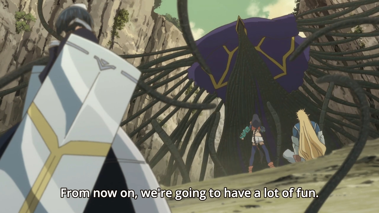 The first third of the episode introduces the premise, so you get to see just how hopeless the situation is. The show then tries to introduce all of the characters in the short amount of time that it’s been given, but it’s even shorter than what Durarara!!x2’s characters got. Not only that, the personalities here are subtler, so it’s even harder to get a feel for their characters. Oh well. I’m not writing a post about it every week, so I’m not particularly concerned that I know relatively nothing about the story. I’ll just keep watching it until it literally pains me to do so. As for the other stuff, the backgrounds look decent, but I’m not impressed with the character designs. The monsters look whatever.