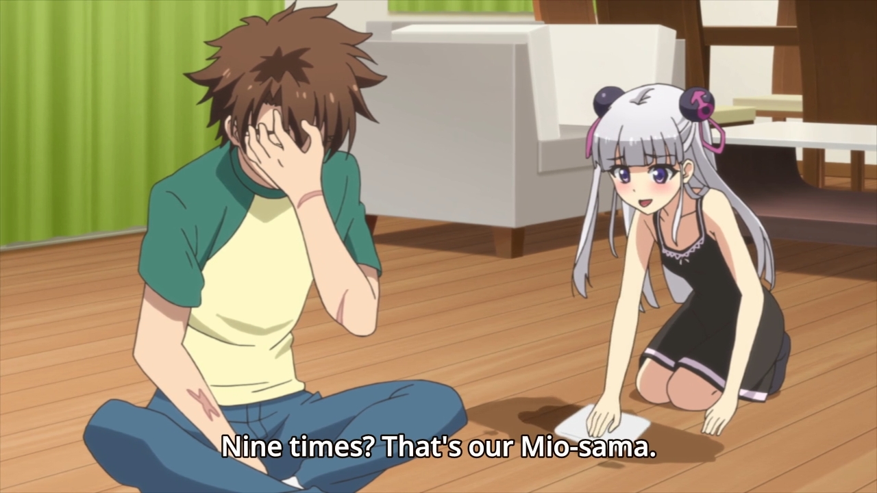 — Mio is deeply concerned about the fact that she couldn’t protect herself. But this is a trashy harem, so enough about her insecurities. Let’s have her faint, so that the hero has a reason to burst into the bathroom and gawk at his naked “imouto.” It’s not like there’s another person in the house who might be able to help or anything.
