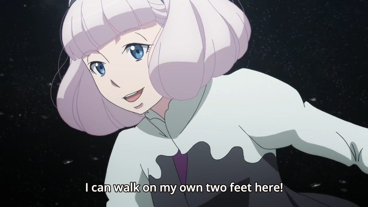 Wait, how can Lemrina even walk in that scene? Even in zero-gravity, a person who is paralyzed won’t be able to move her legs.. So, how the heck does she do all that jumping.