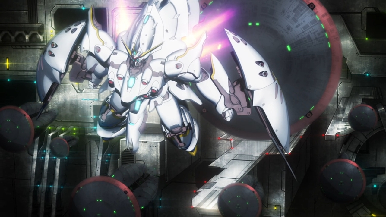 — Eventually, Slaine finally has to step in and put a halt to Inaho’s onslaught. This is the one guy that our Gary Stu can’t kill, because the Vers knight has some sort of pre-cog ability. So as you can see, Inaho isn’t really missing. His enemy is just cheating!