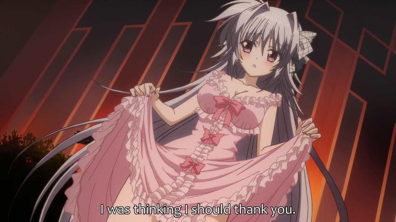— Like every loser harem lead out there, Yuu is appalled that Iris has barely any clothes on… except, y’know, a pink gown that covers up enough of her body… APPALLED!