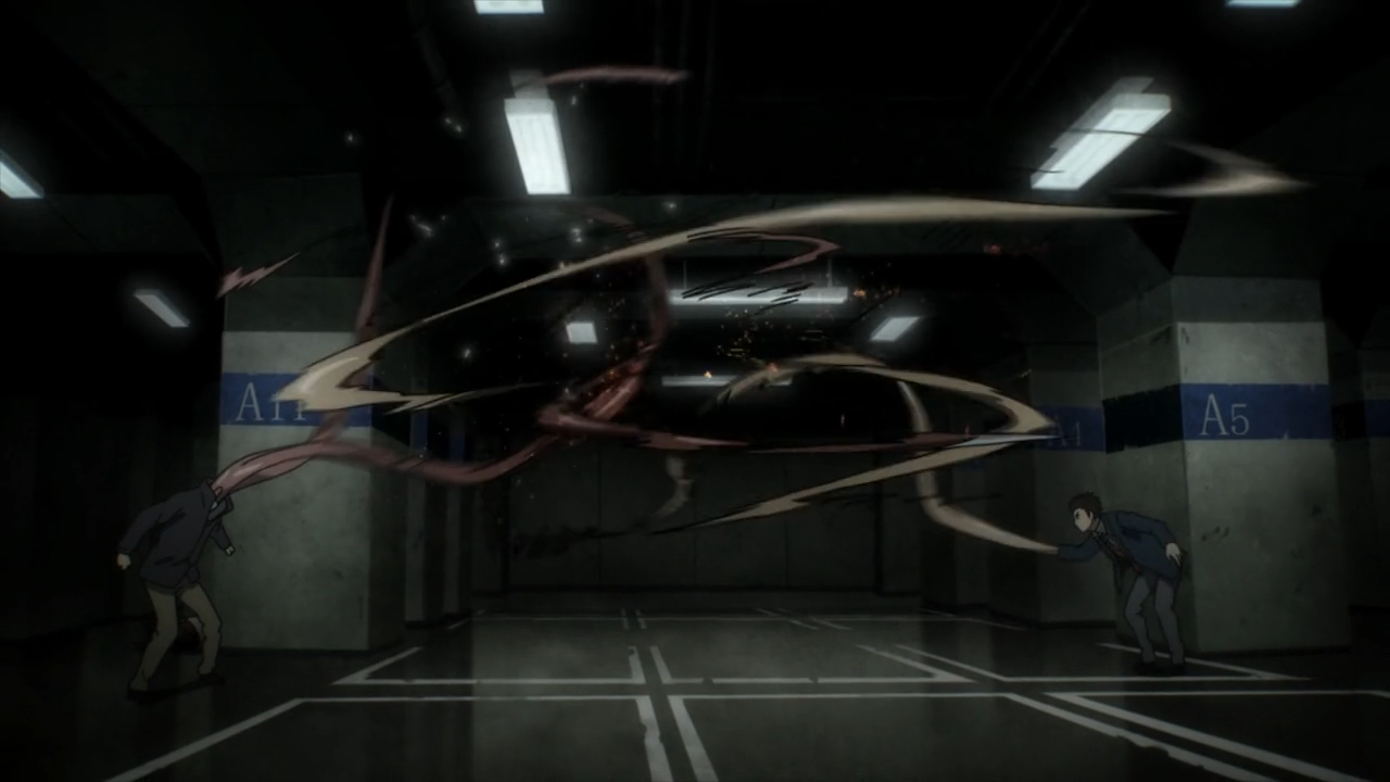 — After the credits, Kuramori comes to Shinichi for help. It seems that the same parasyte that was talking to Reiko had also tried to get Kuramori to come down into that same parking garage. When Shinichi goes to investigate, he suddenly gets a vision of a bloody hallway full of corpses. I wonder if he’s just smelling blood, and the imagination is filling in the rest of the gap.