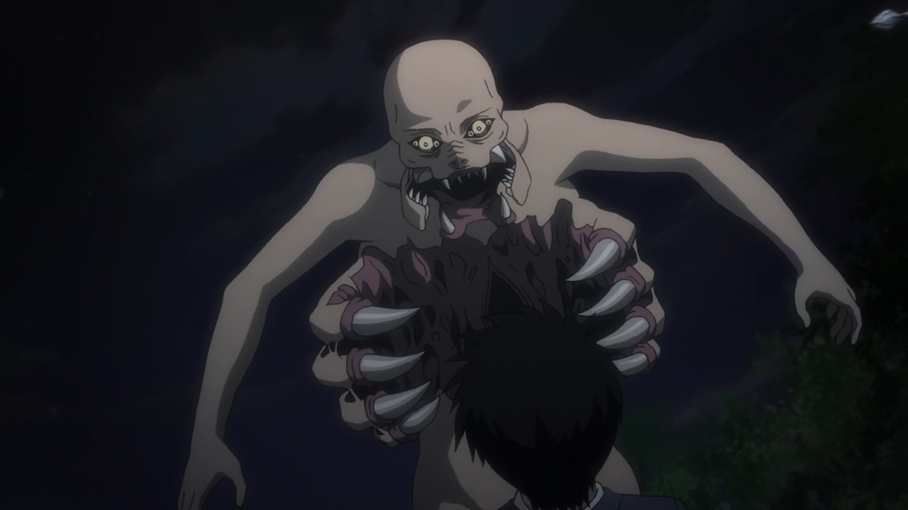 — When Shinchirou exits the classroom, he finds that one of his classmates has been attacked by… this thing…