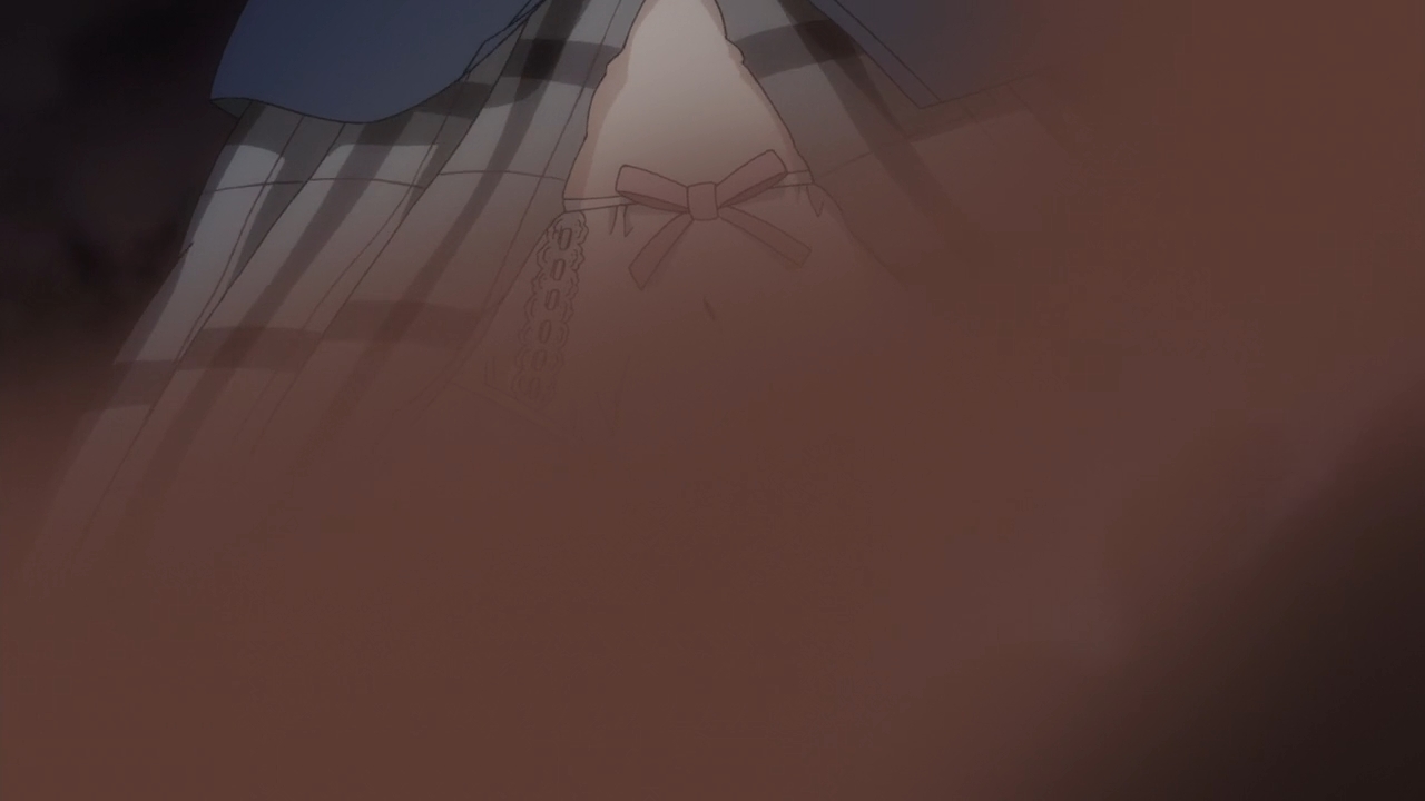 …but not here. I guess it’s a big deal if it’s a close-up, but what more can we possibly see? It’s not like the panties are see-through. Most anime wouldn’t go there.