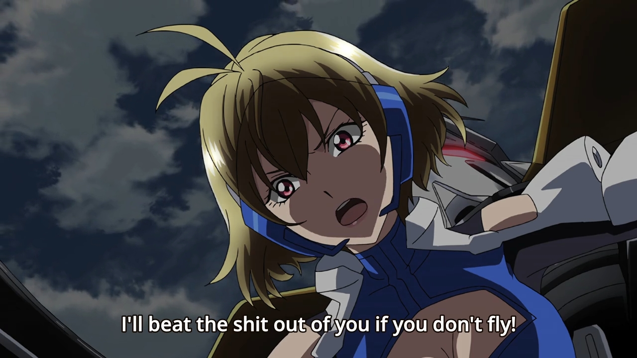 — A bunch of black Villkisses show up, and Ange jumps into battle to help her new friends escape through the now rapidly closing singularity. And guess who’s piloting those black Villkisses? Yep, it’s Salia and… those two yuri girls, but they’re minor characters but who knows. But yeah, Salia is now working for Embryo. Isn’t that just grand? I thought she personally wanted the real Villkiss because she had looked up to Jill, and as such, she wanted to make Jill proud or whatever. I doubt Jill would look too fondly on Salia now that the girl holds such great reverence for Embryo. But it doesn’t matter. Cross Ange is the type of trashy, pulpy story where this sort of character development is commonplace. So long as we have drama and backstabbing, y’know?