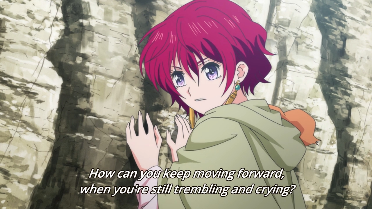 Yona predictably runs off like some innocent anime female character. That’s so boring. We don’t need to turn this into 50 Shades of Grey or anything. We don’t need Hak to hook his damn thumbs into her panties and pull them off for the billionth time. But c’mon, how can any young adult spend so much time with the opposite sex and never even once entertain romantic thoughts? I would. Wouldn’t you? But ever since Yona questioned her love for her cousin, the show has been pretty absent of any sort of romantic development. Like not even one iota of romantic desire from the princess to any of her bishies. C’mon. Not once throughout this entire journey has the princess paused to entertain the idea of even liking any of these guys, much less love them. I would. The people watching this show would. So why make the protagonist, the person we’re all supposed to be watching, so goddamn inert? Anime’s just gotta anime, I guess.