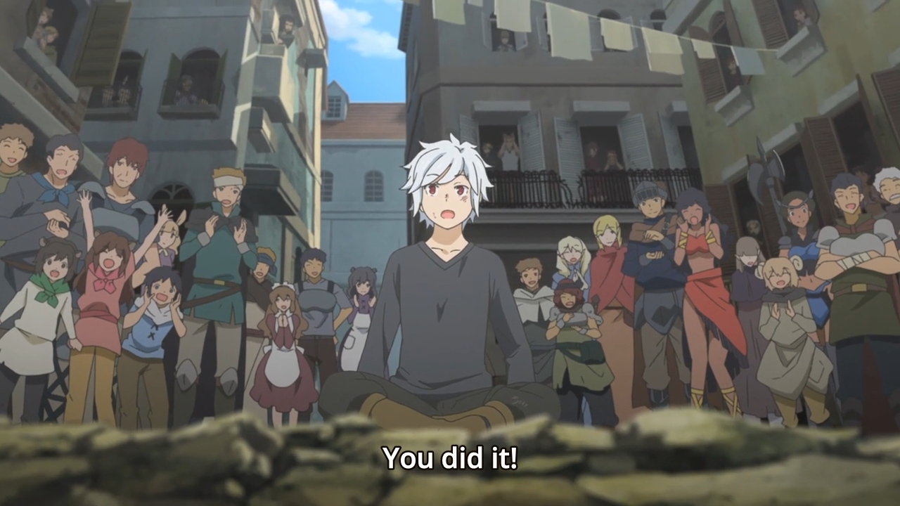 That’s the truth, though. She’s loved him before he’s ever accomplished anything. Hestia also loves him unconditionally. And we sit there and we wonder why. Why do these girls love a guy like that? He’s not worthy. It doesn’t line up with our experiences. Only my mother loves me unconditionally, we might think. On the other hand, your girlfriend still needs you to prove yourself. You still need to be an object worth desiring. Smart, rich, determined, funny, etc. It doesn’t matter. Most girls won’t just love you because you exist. It’s not that Bellri won’t eventually prove himself to be a hero. We’ve already seen from this episode that he’s going to start doing heroic things. But the girls love him before he even does anything. So why are these stories embedded in fantasy land?