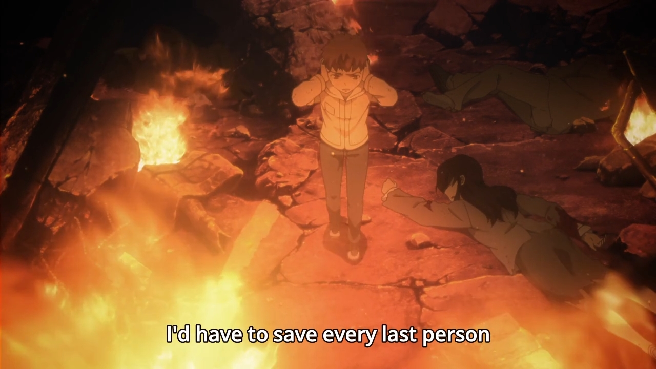 And I don’t see this. If he was going all in, he would actually go all in and help EVERYONE that is suffering. He’s only helping people who are in immediate danger in front of him. Who wouldn’t try to save a child who’s about to be run over by a car? Who wouldn’t run into a burning building to save someone who can’t help themselves? You have a point about extreme altruism if we’re talking about someone suddenly going to extremes just to save random starving villagers in some far off place, but trying to save loli girl from being killed is not extreme altruism when it happens right before your very eyes. I work with what I’ve been given. If the guy literally abandons his wife and children to save people he’s never met, maybe Rin would have a point. But Rin yelling at him for trying to help loli girl means nothing to me. He’s arguably foolish for rushing in without a plan, but who honestly has a plan when a building is burning?