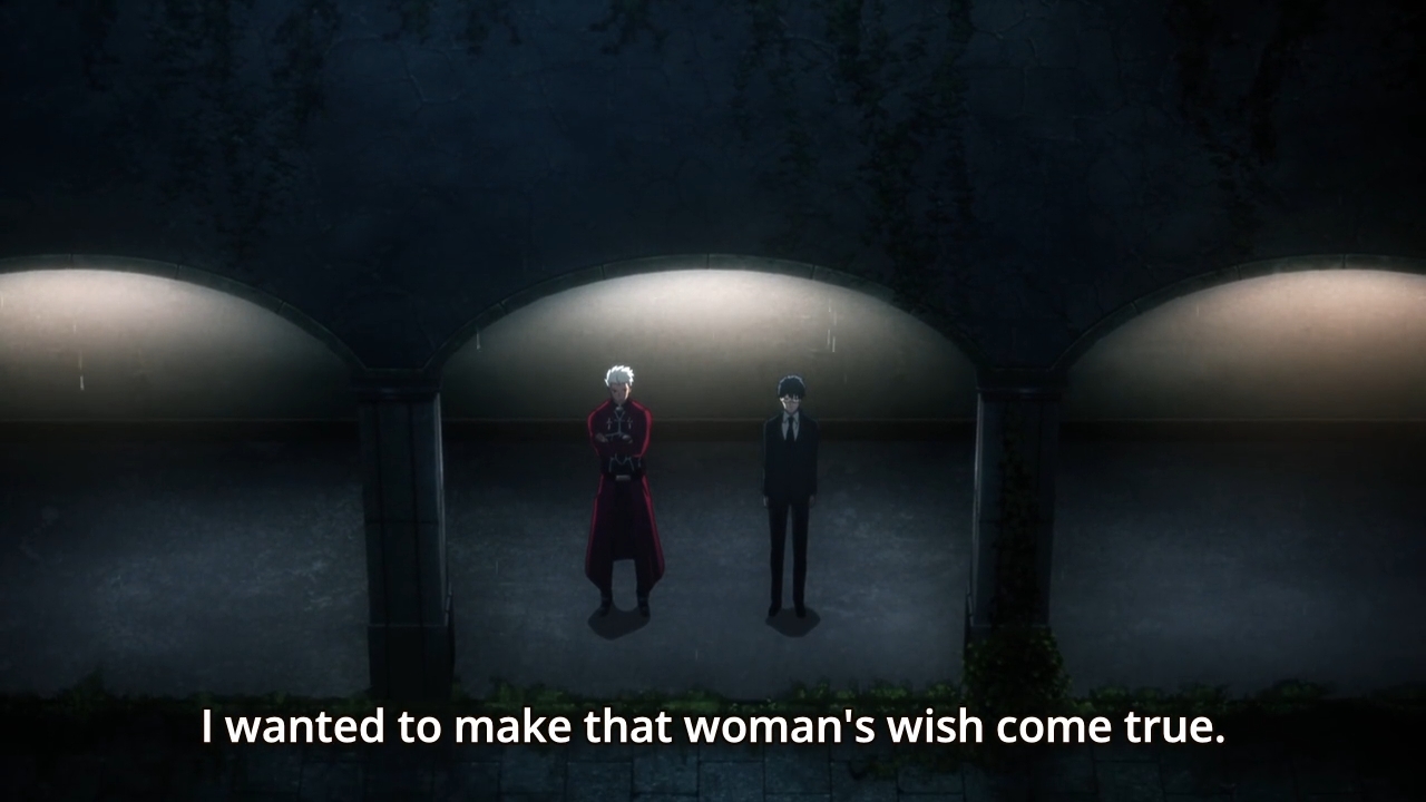 Considering Shirou’s backstory and his very simple motivation, it seems Nasu, the author, wanted to explore the sometimes selfish or misguided nature of a totally altruistic mentality. There’s ways to do this, especially with Shirou’s backstory. It’s a glimpse into the root cause of his desire to save others, but drops the ball because of Shirou’s characterization and what it conveys. It SHOULD show us that beneath his idealistic nature is a selfish desire to free himself from his deep-seated self-loathing brought on by his vicious trauma. His desire to save others is in reality a desire to save himself. But that’s not right for two reasons: