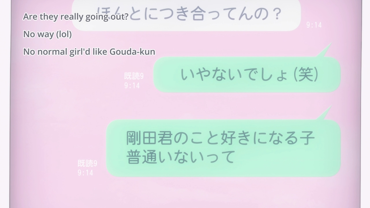 Likewise, their relationship has no depth. I’m not saying that couples should fight or argue or that every conversation they have should plumb the depths of their souls, but holy shit, even Makoto can’t help but comment on the mind-numbingly dull nature of the couple’s exchanges. I’m sorely reminded that this is anime, and of course, this is high school love. As a result, everything is sterilized and pasteurized to such a degree that the relationship itself, much like the leads of the story, lacks any discernible personality. Instead, it has been reduced to this cloyingly sweet puppy love, and sure, this is cute and everything, but it’s also sorely lacking in, well, any meat to chew on. Perhaps the problem lies in the way love itself is conceptualized and idealized. Love is treated like a light switch. One day, event x will occur, and as a result, two people will just fall instantly and madly in love with each other. They don’t get to know each other. They don’t explore their feelings, their compatibility or anything of the sort. So the end result is that, at the moment, Takeo and Makoto have more chemistry than Takeo and Rinko.