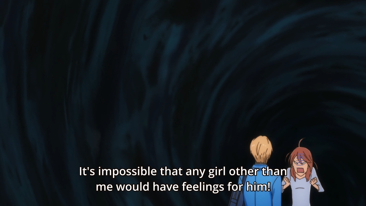 Finally, the thing that bothers me the most are, well, the girls in the show. Rinko’s fine, I guess. I imagine that she never once talked shit about Takeo behind his back just because of the way he looks. But uh, wow, I can’t say the same about her classmates. And you can see it in the way that the genders are being portrayed. Most of the guys respect Takeo because he’s strong, he’s caring, he’s brave, he’s a good bro, so on and so forth. Most of the girls, however, croon for Makoto because… well, he’s hot. That’s it. They don’t know jack squat about him, but it’s okay, because he’s hot, hot, and also cool. And episode after episode, it’s one girl after the next, either bugging their eyes out of their sockets for the hot bishie or scratching their head in abject confusion at the fact that the cute and diminutive Rinko would pick Takeo of all people. It’s enough to make me wonder. I thought things might be a little different in the fourth episode, too. I thought we might meet Rinko’s friends and be spared of this.