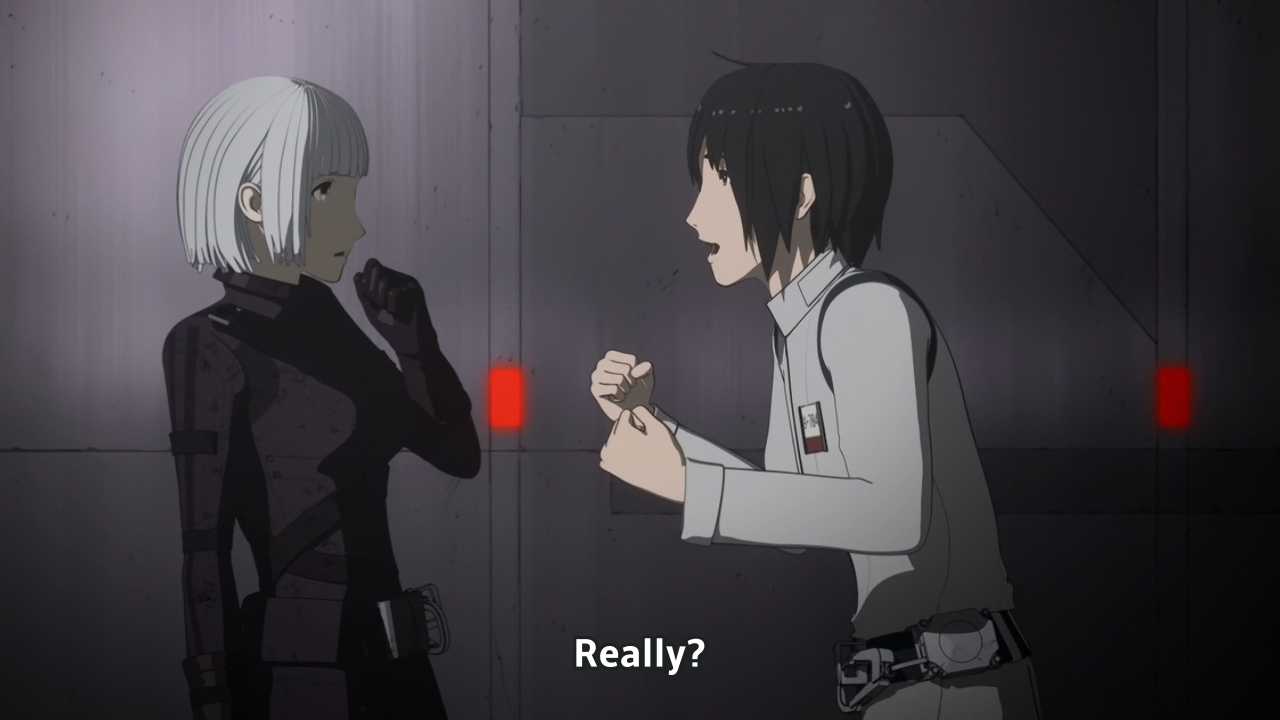 — Elsewhere, the narrative tries to play up the idea that shit will go down when Sidonia eventually has to tango with the large hive cluster lurking nearby. But after the last few episodes, I can’t help but just shrug. I’m sure our heroes will be fine, and sure, some faceless nobodies will die, but the girl characters will emerge from any potential conflict even more moe than ever and that’s all that truly matters.