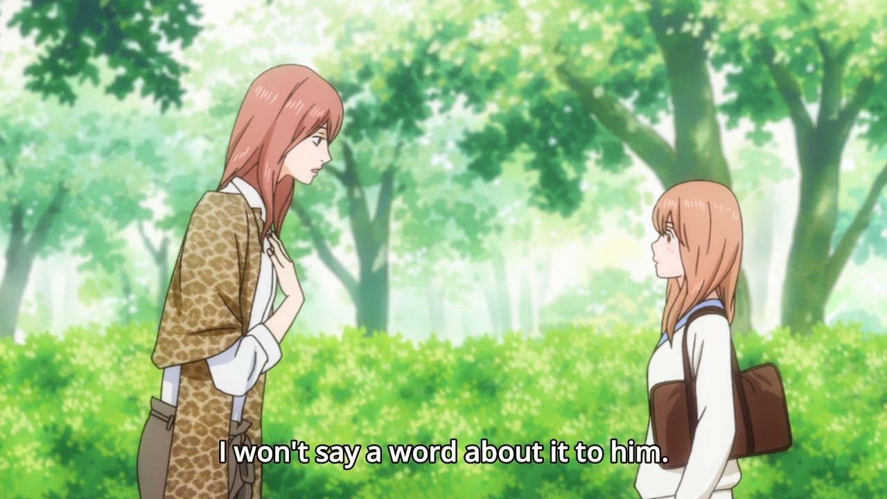 I didn’t know why, but I thought it was some kind of abuse (sexual or not) that happened to her. Which, in retrospect was pretty dumb considering the type of atmosphere this show conveys. The shoujo genre doesn’t shy away from sexuality or even into more extreme cases, but this show is on the opposite spectrum of being sickeningly-sweet vanilla. And so the characters are just unrealistically sterilized.