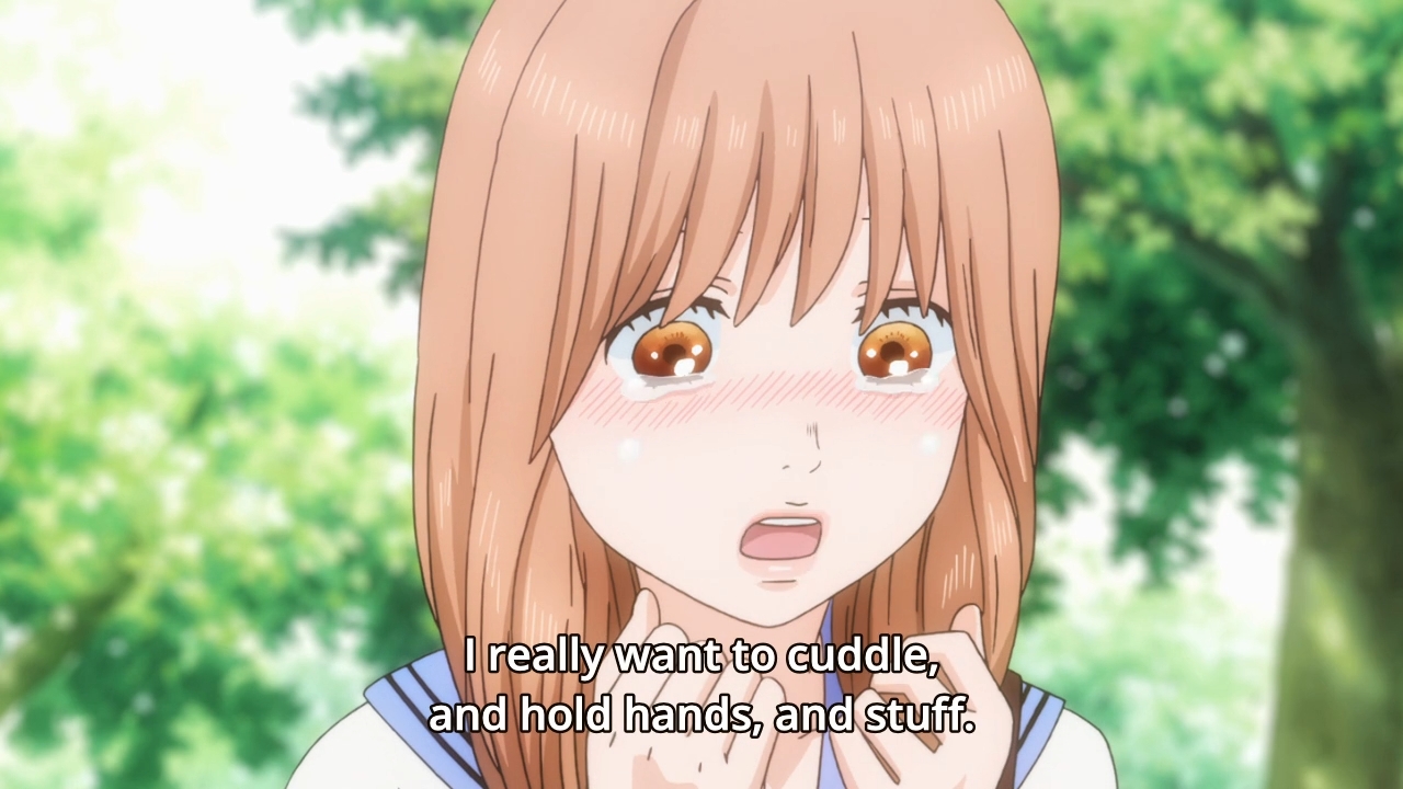 — So Rinko and Takeo finally meet up, and the former reveals that, like, she wants to hold hands and stuff. And snuggle. Uguu.
