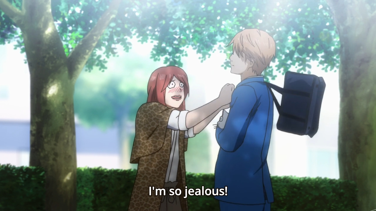 I think the jury’s still out on that. I don’t think this show will get to the point of discussing sex too openly (I was pretty amazed when Parasyte, despite being fundamentally a shounen, unashamedly gave us the protagonist banging his girlfriend. 80s, I guess!), but it’s also true that these guys are high school kids and have just gotten together so I wouldn’t expect them to immediately go *there*. After all some of Rinko’s signals *have* been in the sexual ballpark – her first reaction hinting her “secret” last episode was to seeing Takeo half-naked, and this episode she went to great lengths justifying her desire with physical attraction. I would take it as realistic if it tackled the topic around, say, mid-series, or even as a last arc.