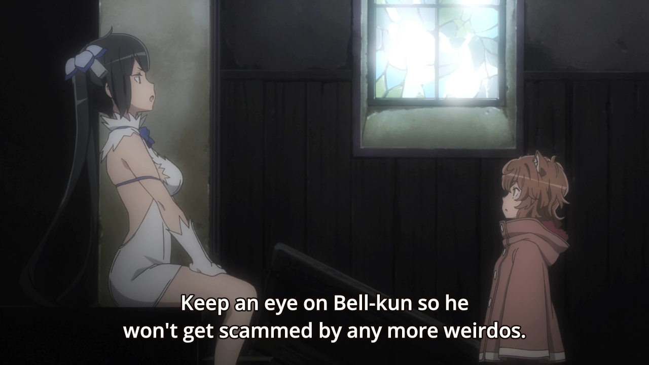 — As a reward, he and Eyes go and get something to eat… only to now run into Hestia. I thought she was busy working in that weapons and armor shop, but maybe Hephaestus also runs a few food stands on the side. In all actuality, the anime doesn’t give a shit about world-building. Running into Hestia for no reason just gives us the perfect opportunity for this scene to occur: