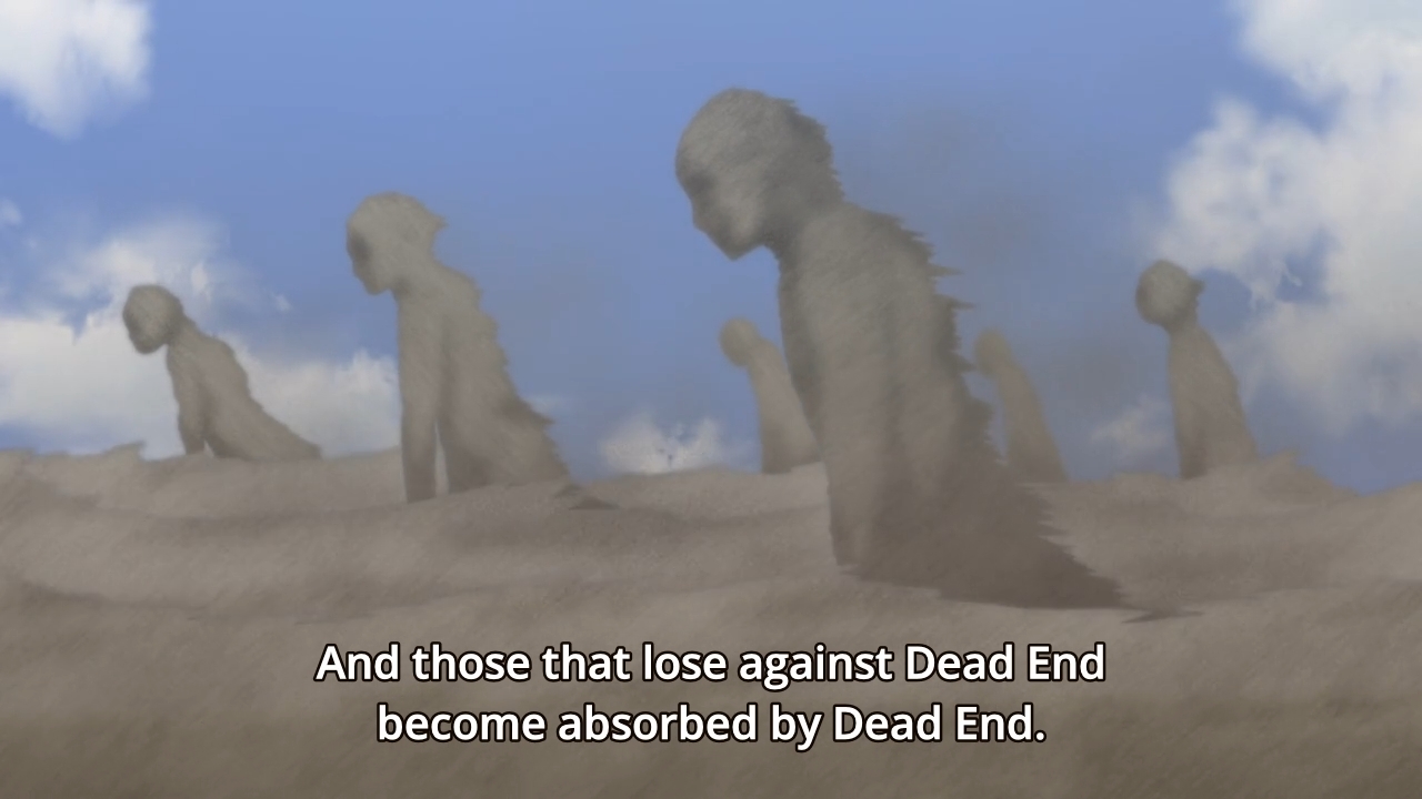 — There’s something wrong with both universes. There’s something called the Desert Syndrome, but it’s hardly a syndrome. Syndromes are typically signs of a disease. Here, anyone afflicted by the Desert “Syndrome” simply turns into sand and crumbles in an instant. For the first four episodes, that’s pretty much the story. We don’t know what the fuck is going on, but we’ve been given weapons, so let’s shoot each other.