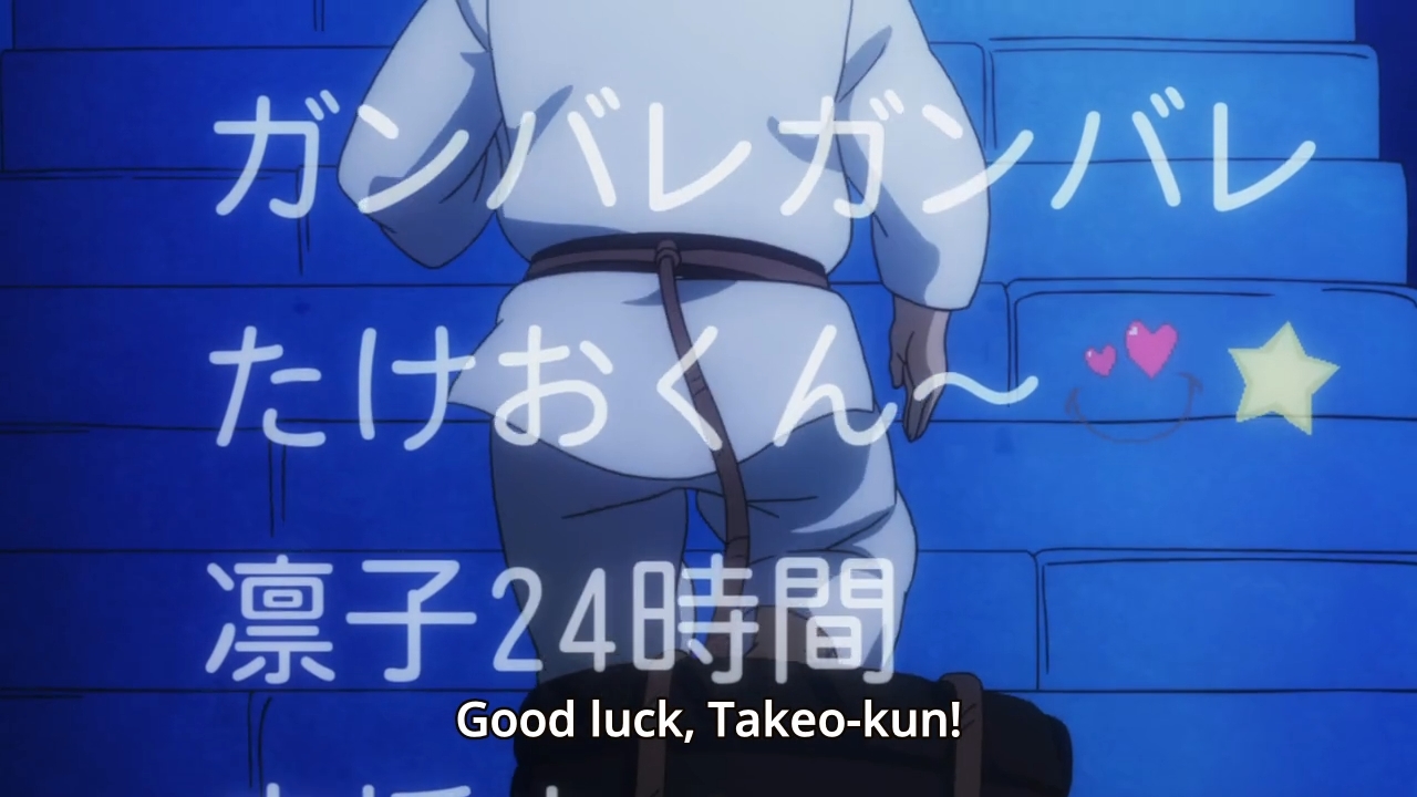 I would have much preferred for Takeo to lose the judo match. He’s such a 2-note character: kind and brawny. If you took some of what defines him away then maybe the show and its viewers could finally see him as human.