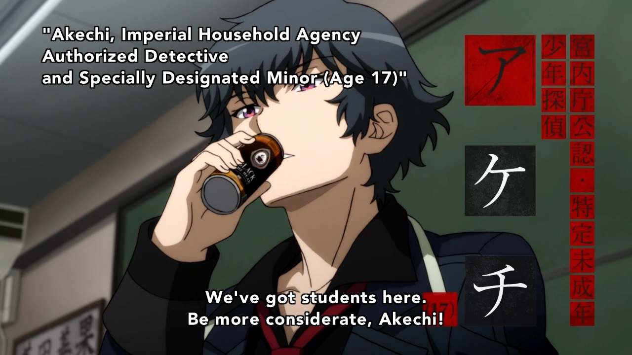 Not only does he smirk as he walks up to a dismembered body, he’s this brilliant, 17-year-old meitantei. There’s a serial killer on the loose, and the main focus here is how fucking cool this kid is. Goddamn.