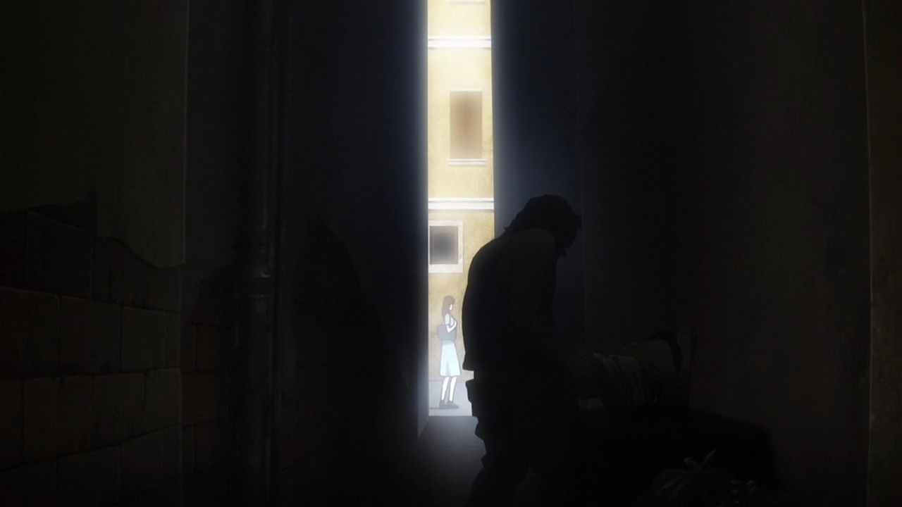 As cool and badass are they are, however, they will still help out old ladies. They will still put out a bowl of food for some stray cat. And of course, our Handymen will take Alex in and not even get handsy with her! Amazing! What a bunch of cool dudes! But cool isn’t enough here. I don’t want to sit here and say, “Well, Gangsta is worth watching, because it’s fun!” Naw man, c’mon, don’t show me a bunch of evil bastards and fucked up girls, then try to make it fun. If we’re going to move beyond the world of magical school girls and can-do shounens — if we’re going to move into the world of adults — we also have to move pass notions of “cool” and “badass.” And Alex shooting one of the very bad gangsters over and over isn’t enough. It’s not the cathartic moment that Gangsta wants. Not when there are just as many Alex’s out there with no one or nowhere to turn to. But the harsh truth is that the fun here needs to be distracting. Nicolas’s badassery and the good feels from hearing Alex answer the phone are here to make this whole sordid business palatable.