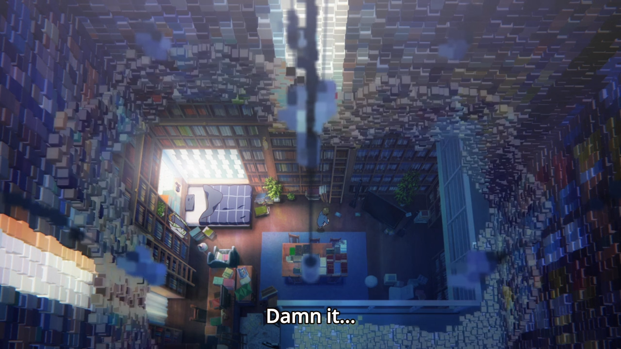 It looks even worse in motion; it looks like something out of a video game. But is this really an oversight by a studio like KyoAni? Who knows. People often like to take the simplest explanation, and leave it at that. But there’s a layer of artificiality in the setting of Musaigen no Phantom World. They say phantoms are hallucinations from the brain, and it would kinda make sense that for these young kids, video games or anything that references them would be on the brain. So who’s to say that the ugly wall isn’t just the same thing but in a more subtler way that makes the audience question whether or not it’s a mistake on KyoAni’s part?