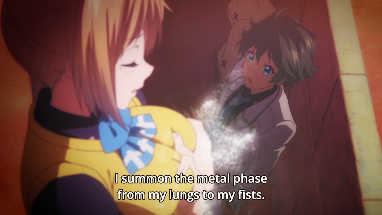 So one character massages different areas of her breasts to do her power. Oh, yeah this is going to be a quality show. *cue montage of breast shots with optional boing-boing effects* KyoAni Same-Facing is probably the least groan worthy part for Phantom World.