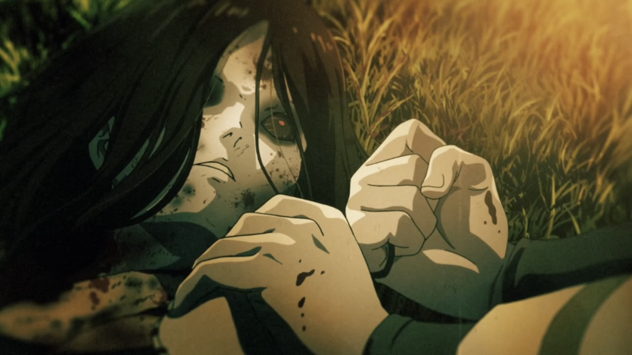 Contrast that to Ikoma. Abandoned by his own people, he nevertheless fights through a crowd of Kabane in order to lower a drawbridge, thereby allowing everyone on the train to escape. But he has choice words for them: “I will save you all. I want you to live the rest of your lives knowing the man you abandoned saved you. And I will laugh at you from the afterlife. And tell you that it serves you right.” But after the deed is done, he breaks down and cries into his hands. There’s a deep anguish in this moment of vulnerability. I suspect nothing is more painful than being “Othered.” Earlier in the episode, Ikoma had reasoned with Takumi that “[i]f they see me take out the Kabane, they’ll have to accept me!” Ikoma ends up doing this twice, but sadly to no avail. He still ends up being abandoned. You can go back even further to the very first episode. Ikoma condemns the very idea of sacrificing one of your own just to save yourself. He sees this as the greatest tragedy of his time. It’s not the loss of life, the loss of loved ones, or even the loss of perhaps country. No, it is the loss of humanity which Ikoma cannot abide.