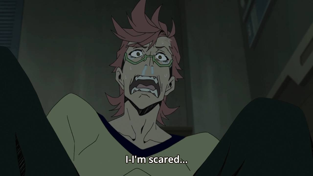 The lack of shared emotional pain isn’t the only thing that seems to be missing. The thing is, we’re looking at pain at such a personal level when the premise lends itself to grand ideas. I certainly don’t want to be dismissive of someone’s deep-rooted phobia, but I can’t help but raise an eyebrow when it turns out to be one of the more serious traumas within the group. Niko reveals to everyone that she doesn’t actually believe in fairies. Tsuguhito is deeply ashamed that he used to be fat. Chidori admits she used to love Katsuhira, and probably still does. Okay… well, okay. That’s the problem. It’s just okay. Let’s go back to the beginning: when you hurt, I hurt. That’s a call to action. That’s a strong statement on our duties and responsibilities as members of not just our community, but as citizens of our country, and as inhabitants of this precious planet. When you hurt, I hurt, so let me clothe you, my friend. Let me feed you, my brother. Let me heal you, my sister. That’s what comes to mind when I think of the saying, “When you hurt, I hurt.” On the flip side, I certainly don’t think, “You used to love me, but now I don’t understand you, and you’ve changed… so that kinda sucks?” It does suck. I don’t want to mock Chidori’s feelings, but at the same time, I’m not swept away. If I was a close, personal friend to Chidori, then I would help her every way that I can. But as a detached viewer, I can only sympathize with her on an abstract level, and that’s where Kiznaiver’s first three episodes lose me. As painful as it might be for Chidori to deal with the placid Katsuhira, there are limits to my emotional investment in her suffering. It’s just not very important to me, especially when there’s a bigger picture just ahead. It’s obvious that Kiznaiver has more to offer, so these personal vignettes feel more like obstacles.