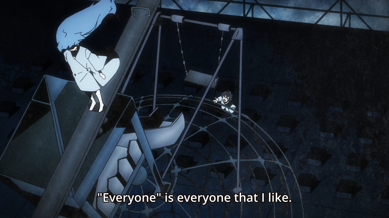 The characters arn’t bad as in they are in the other okada work, i mean there i something they could work with. Bad personality girl is nice, Image centric hot guy isn’t bad and i’m more open to deadpan characters since Yin from DTB so there still remains potential. The last post you mentioned that them sharing physical pain while most of our pain being emotional really sruc with me because i totally agree. here was some other show where the school kids were connected and to get them to connect they were forced to switch bodies, you know the whole walk in someone else’s shoes thing. The choice to restrict the bonds/shared pain to just physical pain when physical pain isn’t an extension of characters emotional pain is puzzling. No one in the show is secretly cutting themselves or anything or overdoses or even breaks things when they’re temper flares. The thing that connects them isn’t making a difference either. Red head still hits people when she’s embarrassed. Why would you keep doing that if you feel some of the pain too, are you telling me she hasn’t become a little more mindful? In the episode she hit katsu…white hair and the other character or at least crazy girl mentioned that it hurt.