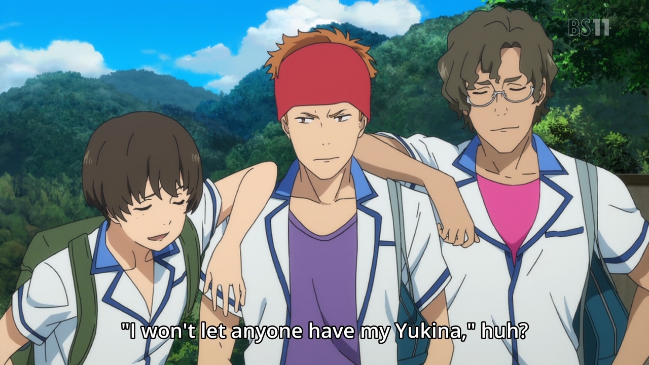 — Apparently, there’s a guy crushing on Yukina, and not only that, his friends are perverts trying to take upskirt shots of Ryoto. None of these characters appear to be very compelling, and they don’t seem to have much potential to them either. Take the guy crushing on Yukina; I can’t see this subplot going anywhere, so it just feels like a waste of time. If there’s going to be romance in this series, we all know where it’s going.