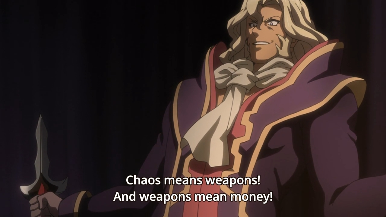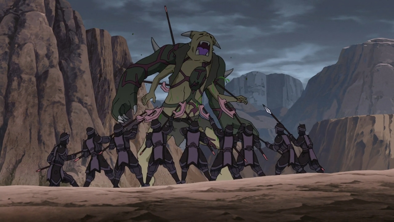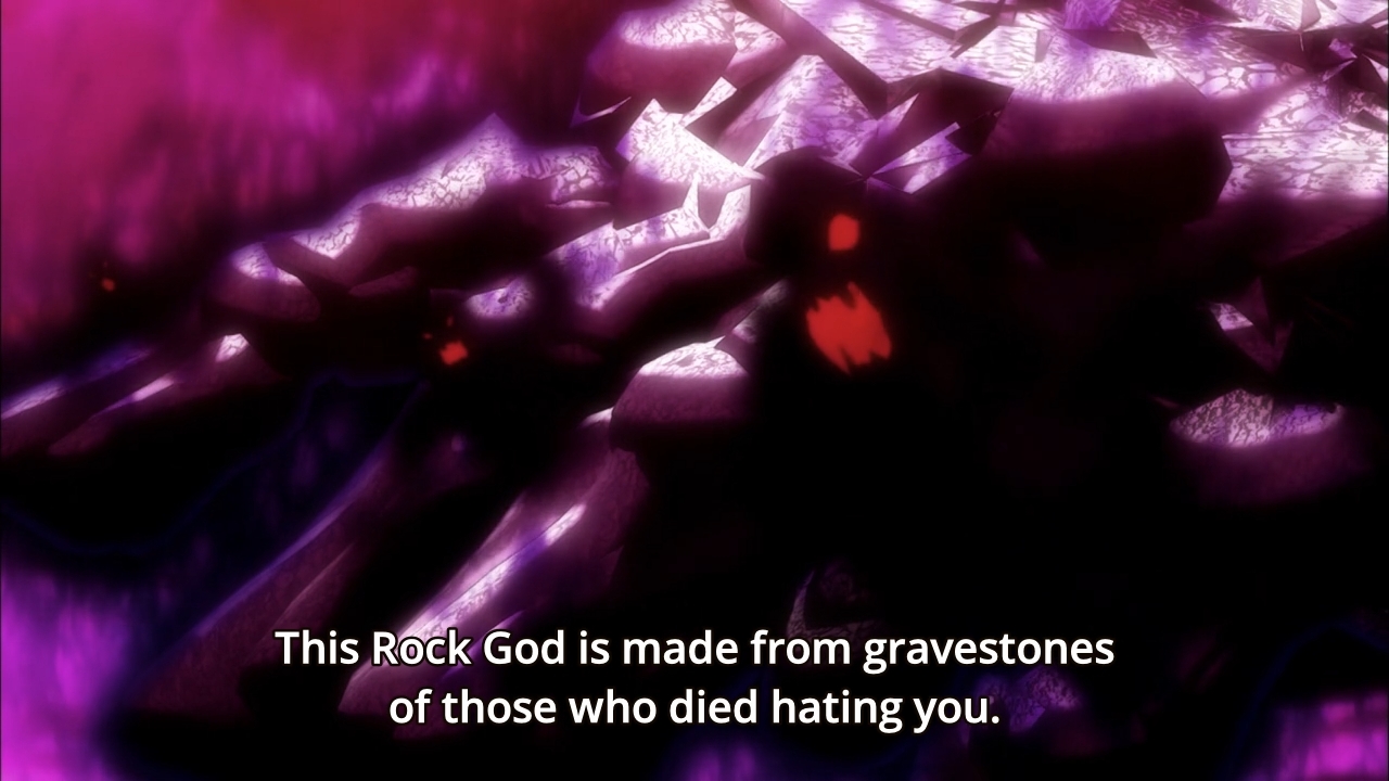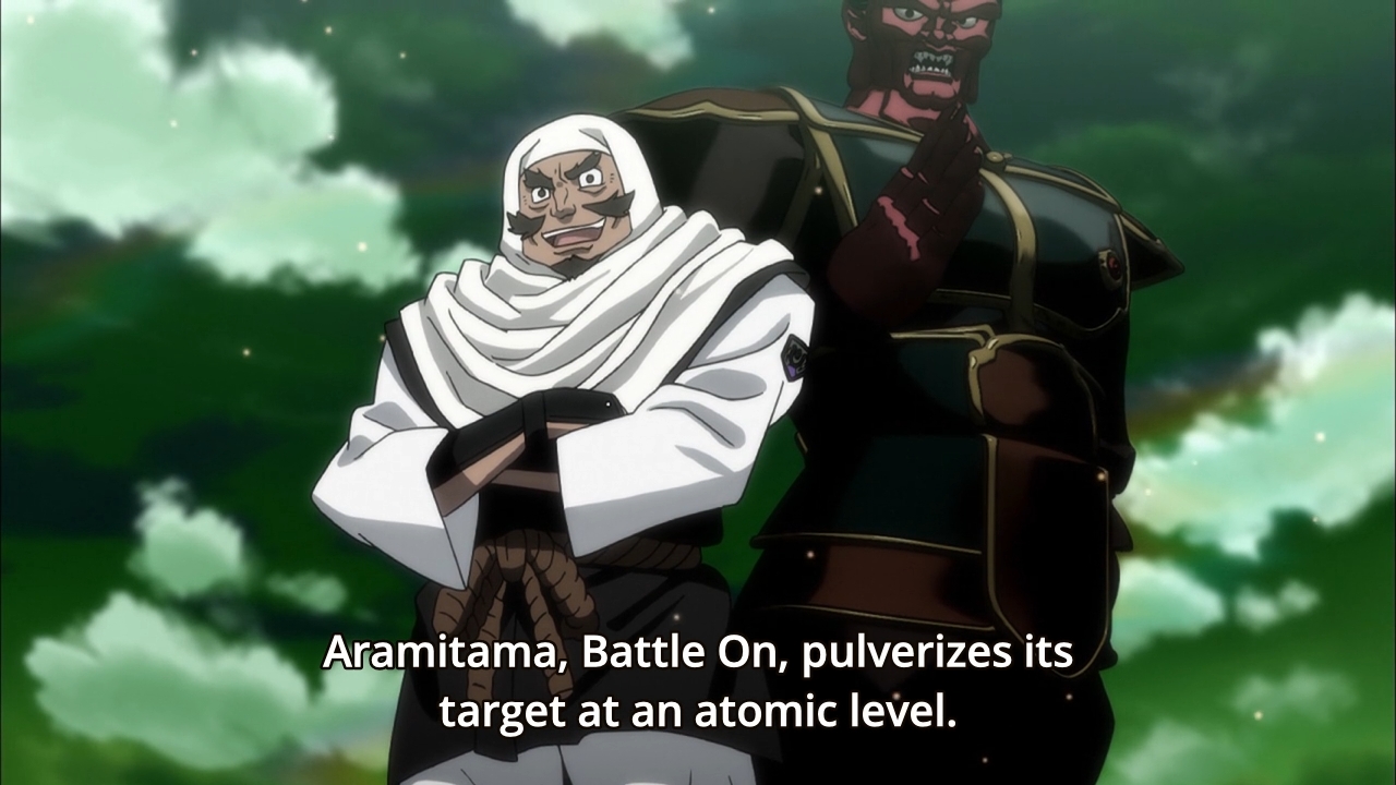 Last but not least, we’ve got our medieval fantasy anime. It’s probably the most amusing out of the four simply because the animation is so, so bad. It also has the most fleshed out villain. Nambuuko looks silly, but he’s apparently the head honcho of this universe’s military-industrial complex. Yeah, you read that right. He wants to revive the evil dragon just because it would sow chaos. And what’s chaos good for? Conflicts! And when nations are mired in conflicts, they’ll all flock to buy his weapons. His twisted weapons. In this week’s episode, he has one of his mad scientists cruelly combine an orc with three humans. Somehow, this half-orc, half-human hybrid makes for a formidable killing machine. In my mind, you just end up with a shitty orc, which doesn’t seem very scary to me, but whatever. Anyway, Hiiro is right back to being useless in this week’s episode. He tries to confront Nambuuko without a weapon, he gets his ass handed to him, he almost gets tortured, and he is only saved due to his connection to Saraato. What a hero.