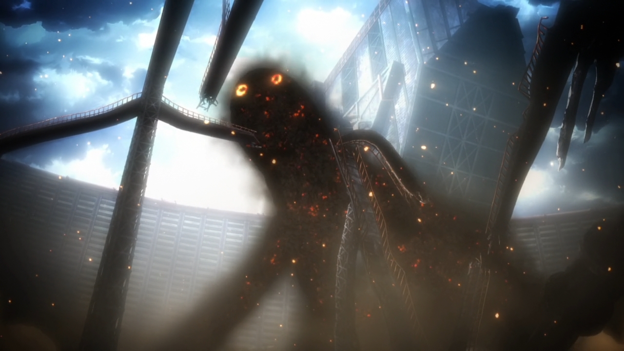 — What do I make of the Black Cloud? I’m not sure yet, which is why I scrapped plans of devoting this post to this bizarre Kabane amalgamation. Initially, I’m sure I had the same reaction as a lot of people, i.e. “What the fuck? Are you serious?” But y’know, emergent intelligence is not such a crazy concept. The Kabane seem like your average zombie most of the time, but we also don’t really know all that much about them. After all, last week’s episode featured a Kabane that knew kenjutsu. So I don’t know… I mean, if you put thousands upon thousands of Kabane together, could a complex system emerge from from the resulting mass? Ants don’t seem very smart by themselves either, but ant colonies are, well, amazing. At this point, however, I hesitate to speculate, because this Black Cloud shows up for less than a minute. I’ll just wait to see how it all goes down in next week’s episode. I just hope it’s nothing too silly and fantastical.