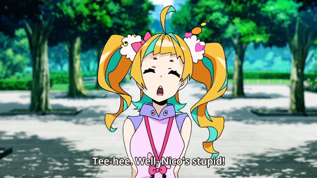 So how do I feel about Honoka’s story? It’s a step up from Chidori’s love problems, but like with most shows, the problem is in the execution. We still don’t know what happened between the two girls, and yes, I know we’ll find out eventually. But it’s like the friendship definition from earlier: everything’s done backwards. The story is trying to achieve an emotional payoff without actually creating the foundation for it. Honoka feels bad, guys. She feels really bad. She’s hurting. The characters tell us over and over that she’s hurting. They know, because they’re hurting. Golly gee, she feels bad. Do you realize she feels bad yet? And this entire time, we don’t actually know why she feels bad! Okay, something happened between her and her friend. But that’s all I know, so as a result, I can’t actually feel anything for the girl.