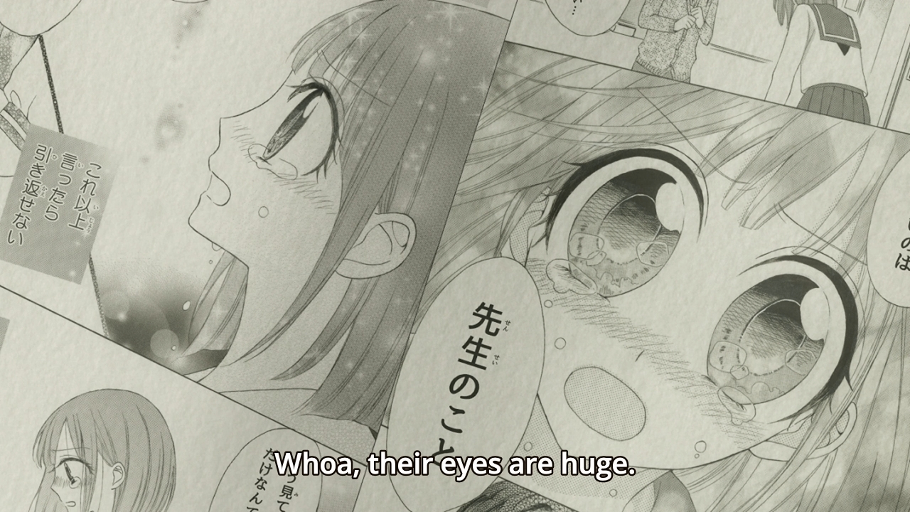 — On the one hand, at least Kiznaiver is taking some light jabs at the ridiculous eyes you sometimes see in manga. At least, I think they are. But on the other hand, the manga here was done by a couple of preteen girls, so… I mean, I’m not expecting some fucking Van Goghs in middle school.