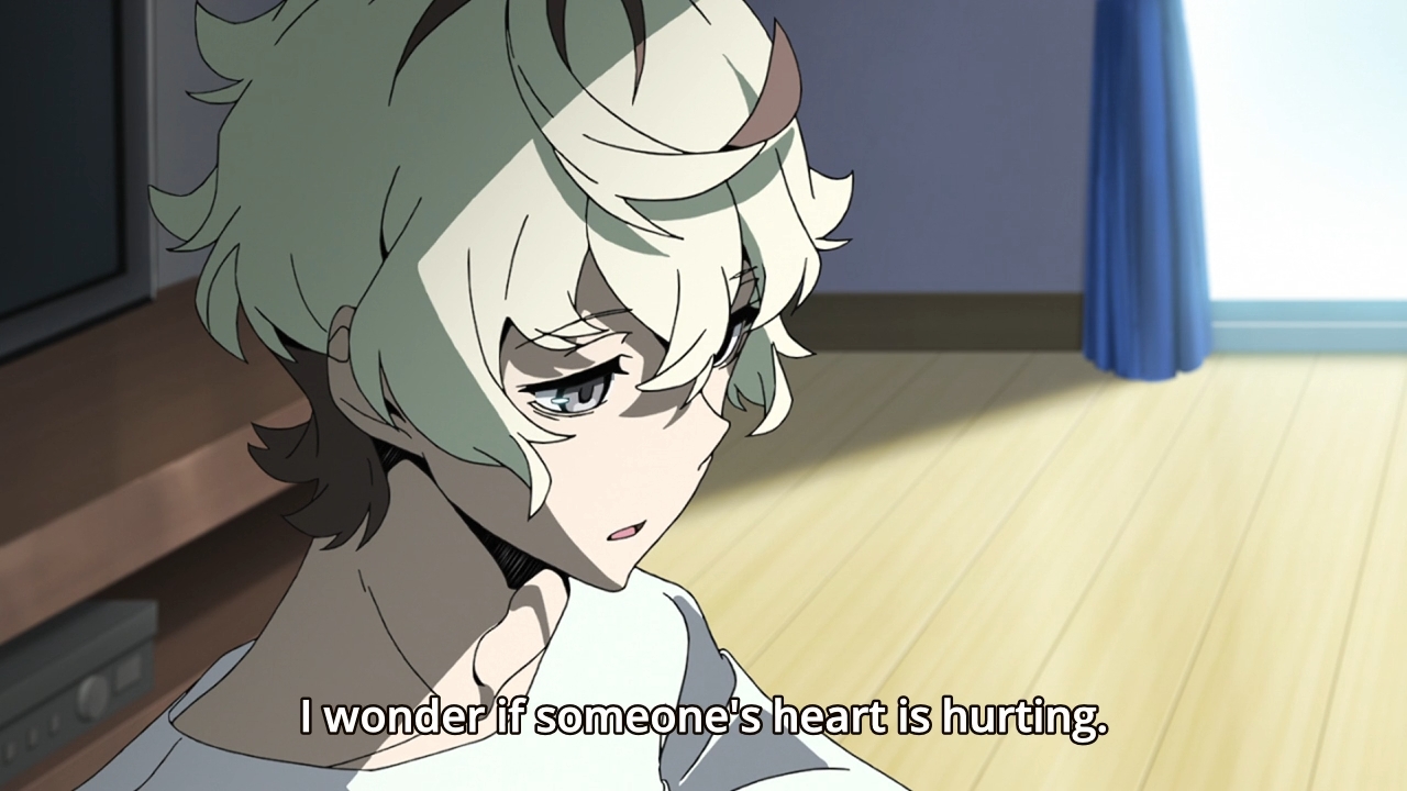 But in my heart, let’s say that it hurts. It hurts real bad. It’s selfish, but I can’t control that. I can only control what I choose to do about my feelings. If my girlfriend and I are stuck in the Kizna System, she’d instantly know that I am hurt. And you know what? Even if I tell her it’s okay for her to go out, just the fact that she knows I’m hurt will probably sour the rest of her night. Some feelings just aren’t worth sharing, and part of growing up is learning to recognize the ones that are worth communicating with our partners. I hope Kiznaiver doesn’t go hog wild with the idea that it’s a good thing for these “friends” to suddenly know every single time one of them is hurting.