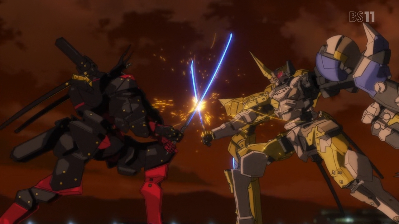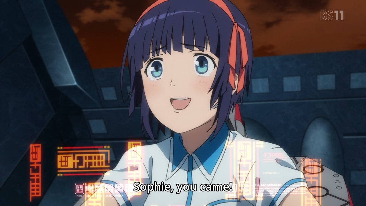 — I think it’s kinda sad that Yukina reacts so positively to Sophie’s arrival, since we know how much disdain the latter seems to have for our heroine. Speaking of Sophie, I don’t have much to say about the rest of the squad. I just feel that the action there is less compelling than the duel between Kuromukuro and the Yellow Crab. Maybe it’s because the headless mechas just feel less human, so it’s hard for me to really care what happens with them. Also, I’m over the Sophie-Sebastian dynamic already. I think it’s cringeworthy, especially since we always create these blonde, foreign characters then proceed to treat them like royalty.