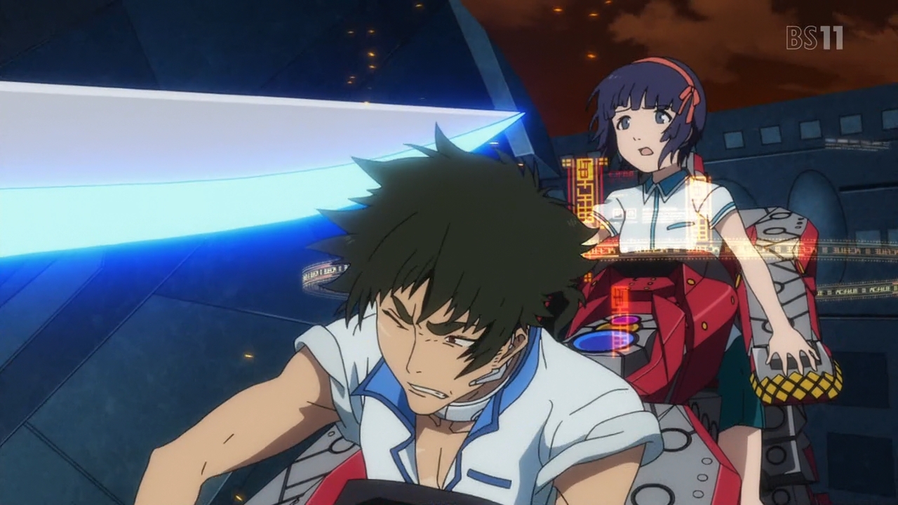 — Yukina’s mom suddenly chimes in and informs us that “the big geoframe’s combat strategy centers around nullifying its opponent’s recovery system.” What a clunky way to convey that information to the audience. P.A. Works couldn’t come up with an elegant visual solution; they didn’t know how to communicate the same information to us without just flat-out saying it. This is one of the episode’s few issues.