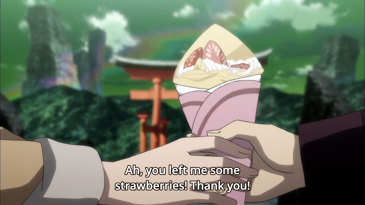 And you know for damn sure the date between our hero and Rin would’ve normally chewed up an entire episode if this had been any normal adaptation. But don’t worry, we still kept in the “indirect kissu” part for all you harem enthusiasts out there. Last but not least, the next baddie shows up, and he somehow has the ability to cancel out Eiji’s power. When two people have similar powers in anime, it’s a good bet that they are crucially linked in some form or fashion. The new villain is thus none other than Eiji’s very own father. It’s telling that a good percentage of anime protagonists need to be told who their fathers are. Anyway, Eiji was about to lose when Hiragi shows up in the nick of time and uses his ctrl-z powers to undo all the damage. That’s convenient. Eiji’s father has the last laugh, however, as he escapes with Rin in tow. Uh, does this count as netorare? No wonder anime protagonists hate their fathers so much. Oh, and if you’re still wondering about Iyo’s pregnancy, it just… went away. Really.