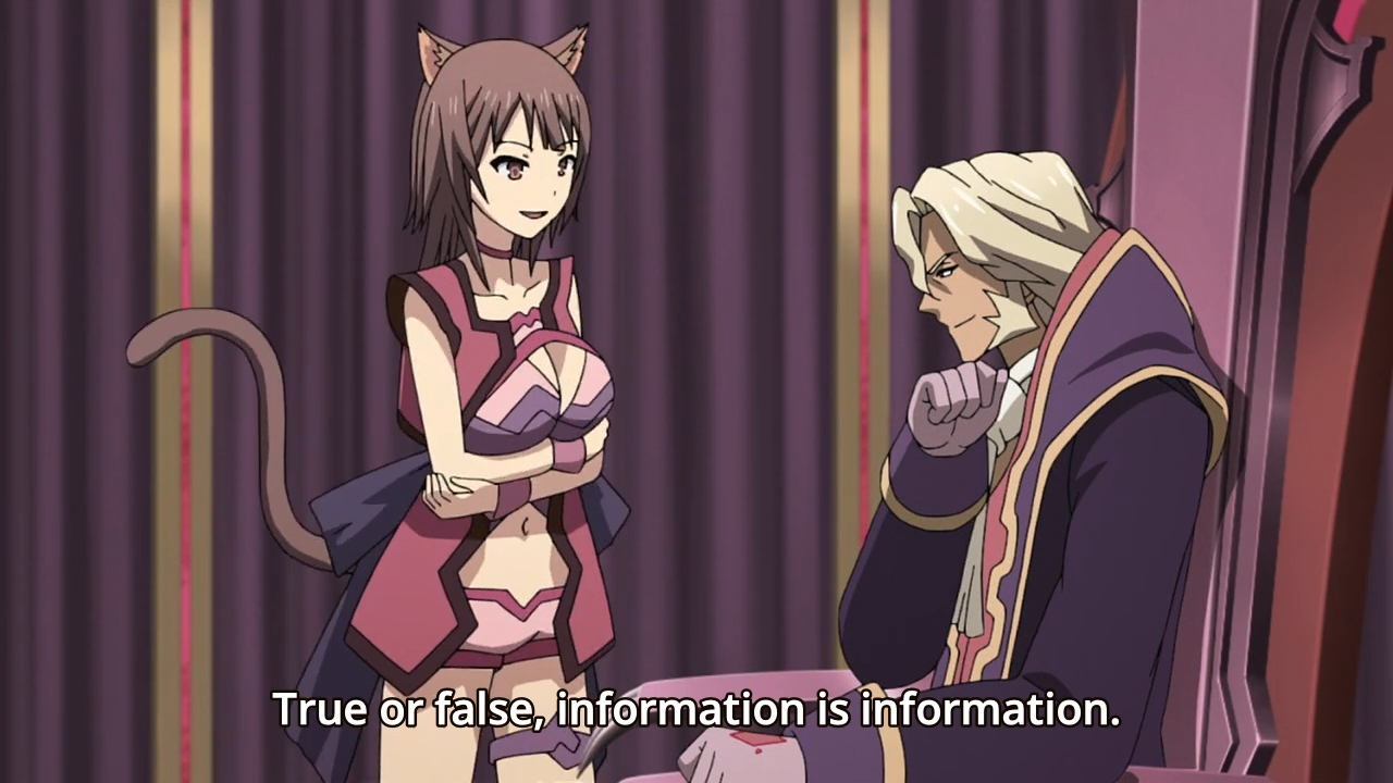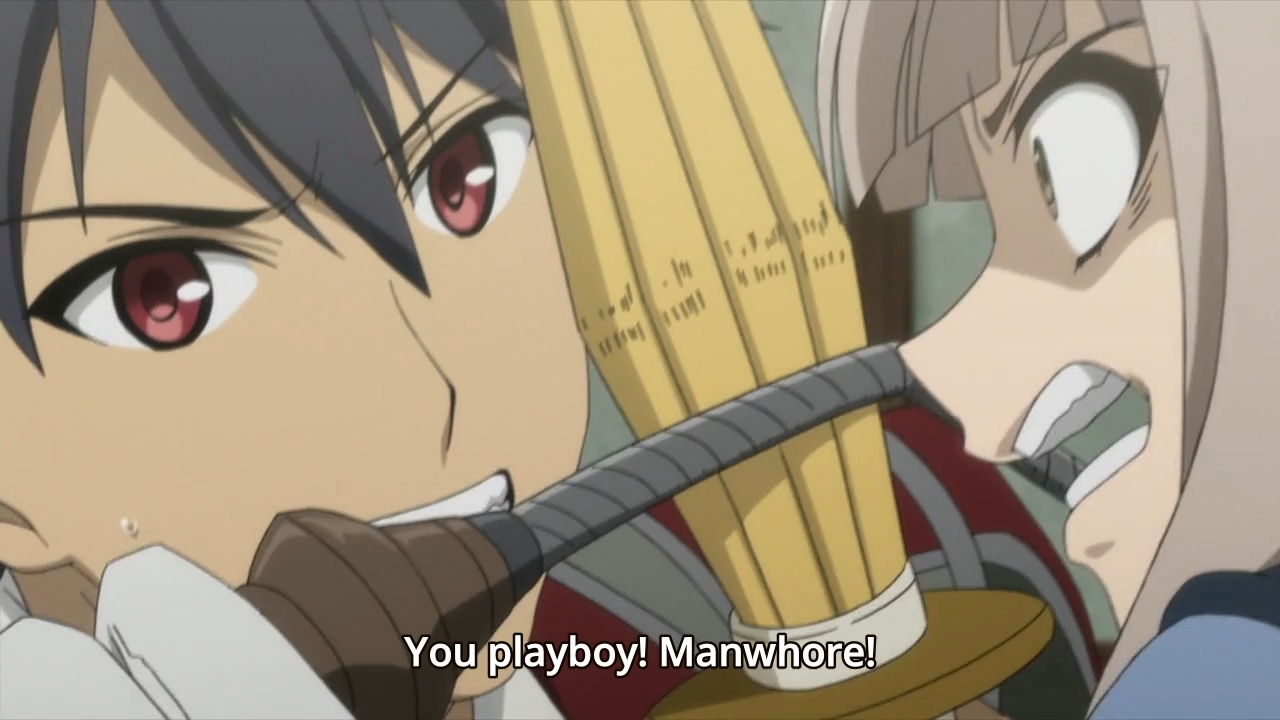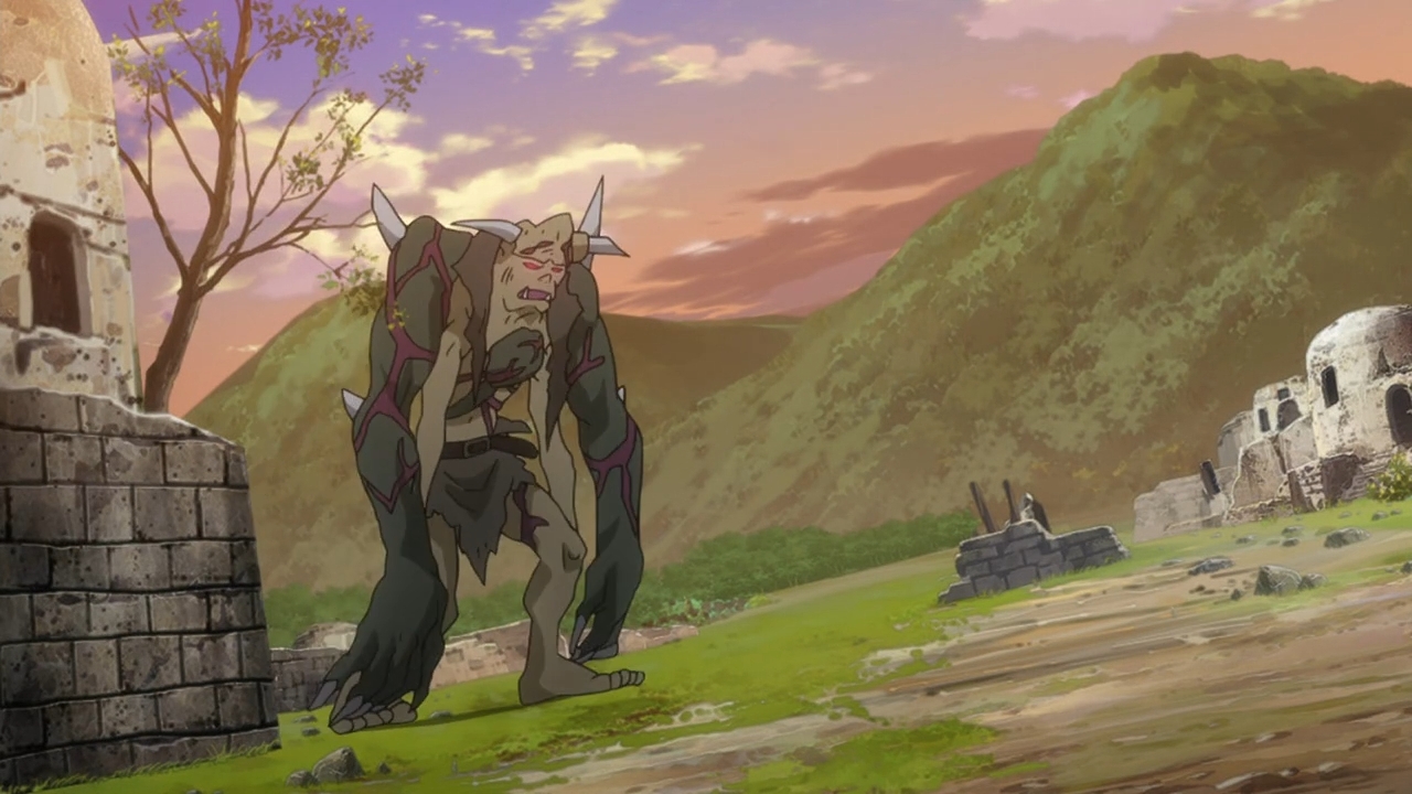 Alright, this isn’t a harem show, so it doesn’t really belong here. But then again, this is Monday Blues and not Harem Hill, so I can technically cover any show I want. But yeah, the only person who can possibly love Hiiro is a braindead one, so that’s probably the only reason why Seisen Cerberus isn’t a harem. The first half of the episode explains why Dagan Zot protected our hero all the way back in episode one. Apparently, the evil dragon’s heart now beats within Hiiro, and it also happens to be the source of his uncontrollable powers. The second half of the episode fleshes out Giruu’s backstory, which I have just been dying to hear. The product of an ogre father and a human mother, Giruu had to watch hateful, prejudiced villagers hang his parents before his very eyes. How tragic. Really makes you feel for the guy. Luckily for Giruu, Hiiro’s father took the wayward kid in, and he instantly, uh, bonded with baby Hiiro upon first sight? At least I hope it’s just regular ol’ bonding, and not that weird ass imprinting shit. The bittersweet flashbacks are quickly followed by Giruu slaying that orc-human hybrid from last week’s episode. Y’see, the former was conceived naturally through good ol’ lovemaking between an ogre and a human. That orc-human abomination, on the other hand, was the result of a twisted experiment. It killed an entire village, and it’s evil. No ifs, ands, or buts about it. Anyway, the episode ends with the catgirl selling information regarding Hiiro to Nambuuko. Clearly, the lesson here is to never trust anything less than a human. That includes Hiiro and his twisted dragon heart.