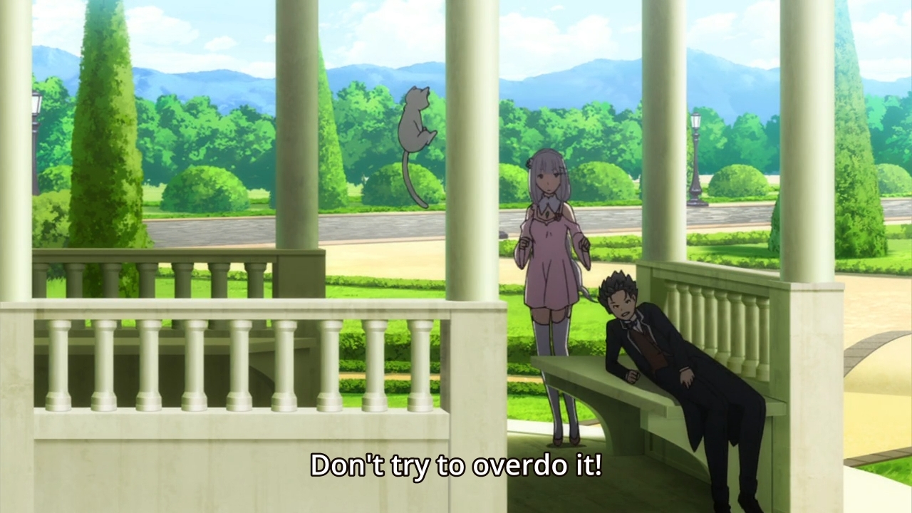 — Then more wacky banter between Subaru and Puck. I swear, I think this show has more pointless chatter in it than Fate Something or Other.